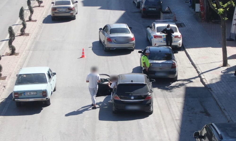 Konya İl Emniyet Müdürlüğü Trafik Denetleme Şubesi ekipleri, rutin denetim yaptıkları sırada, durumu fark eden bir sürücü aracını durdurdu. Sürücü ardından yan koltukta oturan eşiyle yer değiştirdi. Yaşanan bu durum ise havadan görüntü alan İnsansız Hava Araçları Büro Amirliğinde (İHA) görevli polisler tarafından tespit edildi. Otomobilin duruş anı, içindekilerin yer değiştirme anları ve aracın tekrar hareket etmesi anbean kaydedildi. Görevlilerin, görüntüleri anlık olarak takip ederek denetim noktasındaki trafik polislerine bildirmesi üzerine otomobil durduruldu. Yapılan kontrollerde arka koltuğa geçen asıl sürücünün ehliyetinin olmadığı tespit edildi.