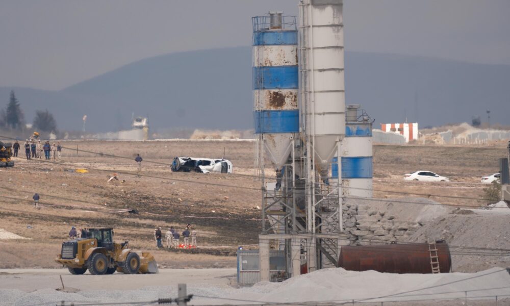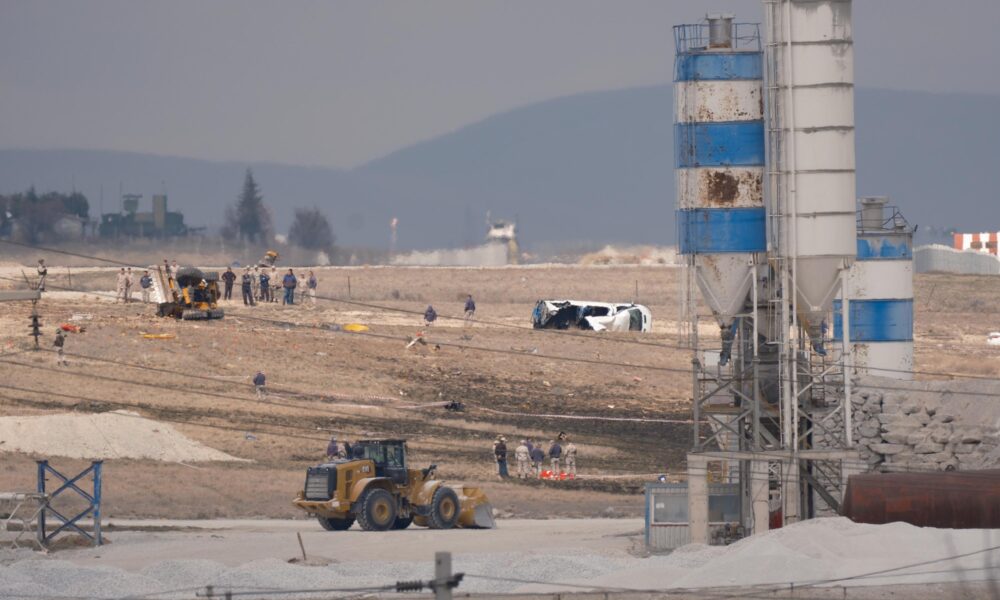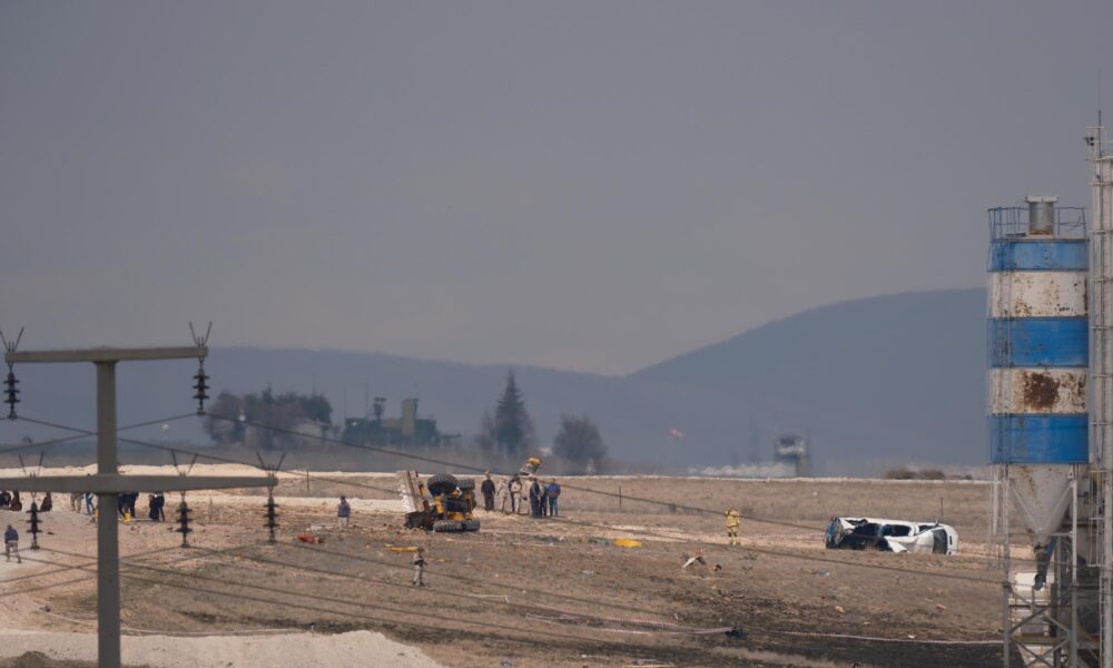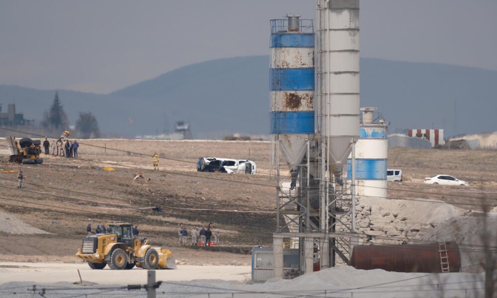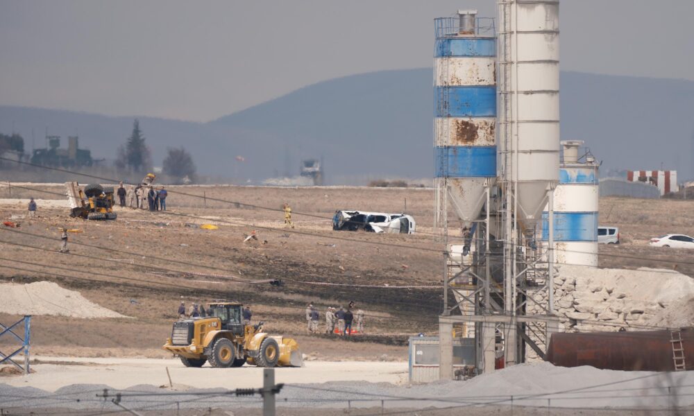 KONYA'DA HAVA KUVVETLERI KOMUTANLIGININ AKROBASI TIMI TURK YILDIZLARINA AIT F5 EGITIM UCAGI 3'UNCU ANA JET US KOMUTANLIGINDA INIS SIRASINDA PISTIN YAKININDA SANTIYE ALANINA IS MAKENESININ UZERINE DUSTU. PARASUTLE ATLAYAN PILOT S.G. SAG OLARAK KURTURULURKEN IS MAKINESINI KULLANAN UZMAN CAVUS OPERATOR SEHIT DUSTU. (FOTO: HASAN DONMEZ/KONYA,DHA)