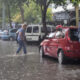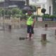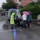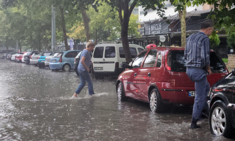 Konya’da sağanak caddeleri göle çevirdi, kaza yapan motosikletliye bir kişi şemsiyesini tuttu