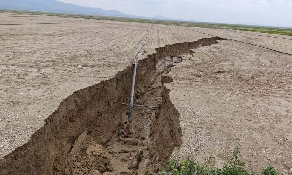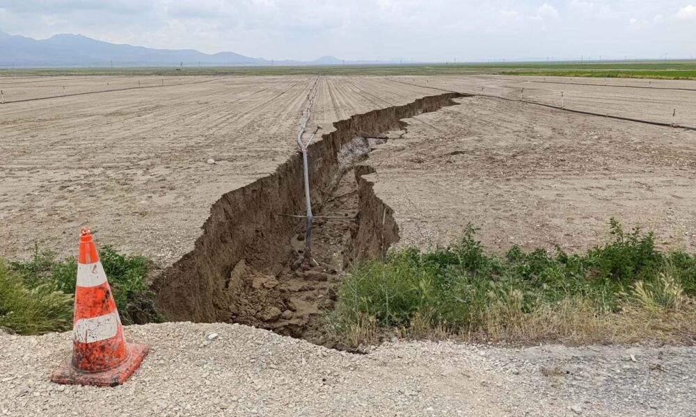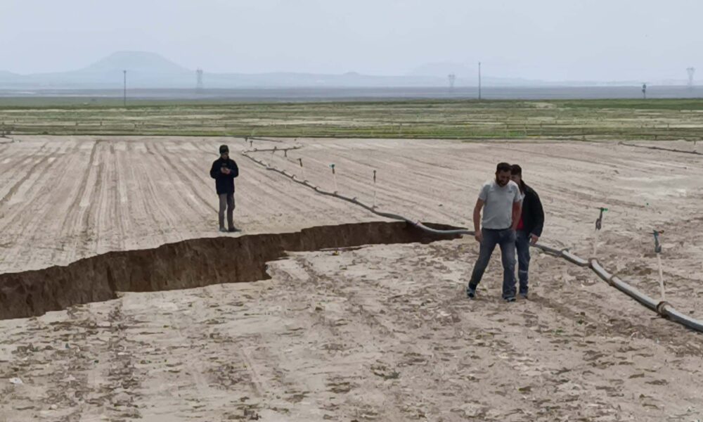 Konya’da yağış sonrası tarlada yüzey yarığı oluştu