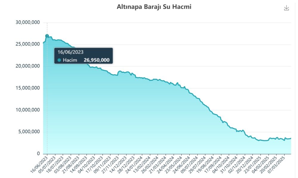 Son 15 yılın en kurak kış mevsimini geçiren Türkiye’nin tahıl ambarı olarak bilinen Konya Ovasında, barajların doluluk oranı alarm vermeye başladı. Kente içme suyu sağlayan barajlardaki doluluk oranları dikkat çekti. Altınapa Barajı’nda 2023 yılının mayıs ayında ölçülen su miktarı yaklaşık 27 milyon metreküp iken 2025 yılının 15 Mayıs günü ölçülen değerinin ise 5,7 milyon metreküpe gerilediği görüldü.