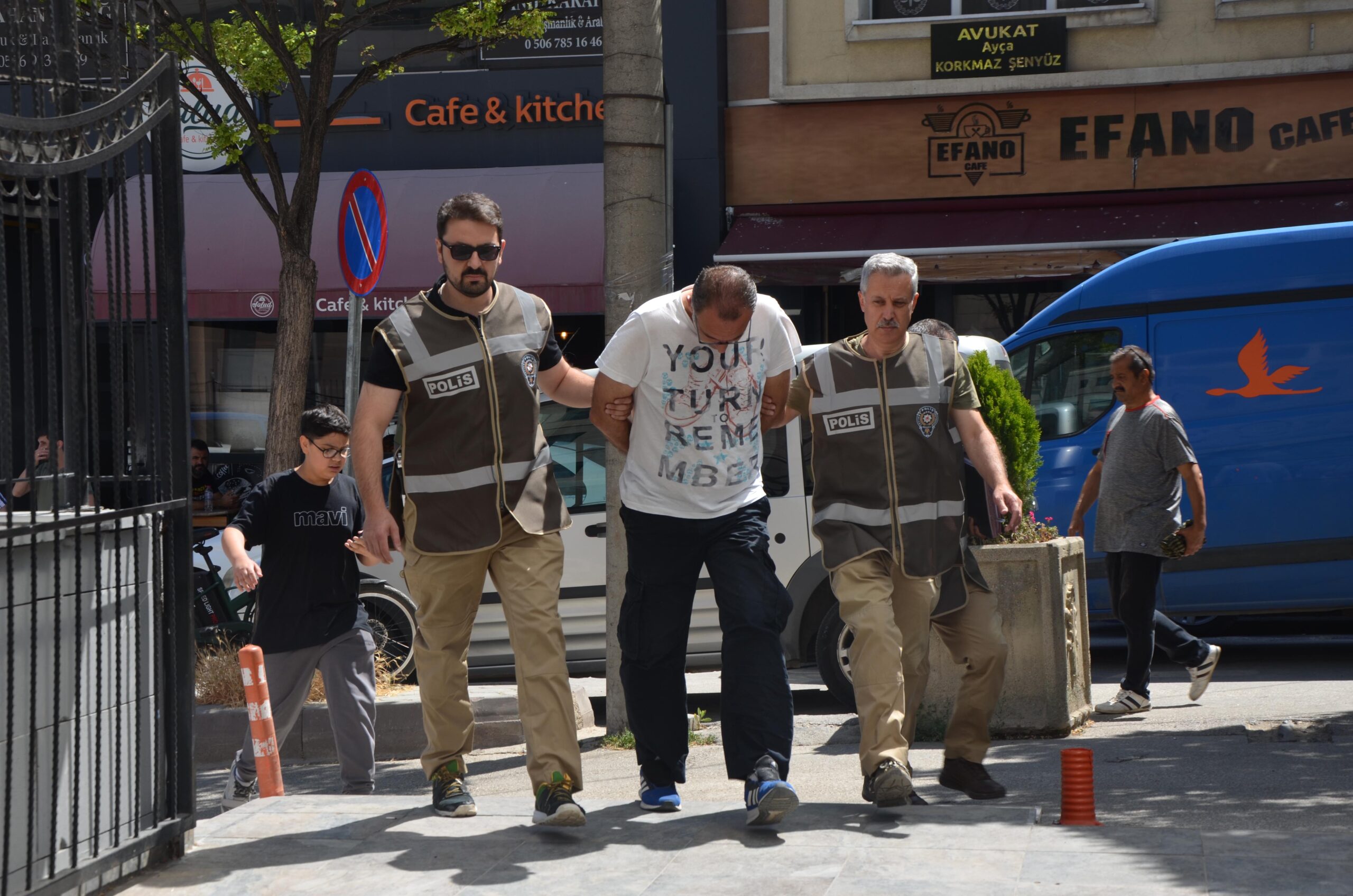 • Eskişehir’de iş ortağına ait köpeği yere attıktan sonra bir süre boğazını sıkan Zafer B., gözaltına alındı. Fotoğraf: Eskişehir,(DHA)