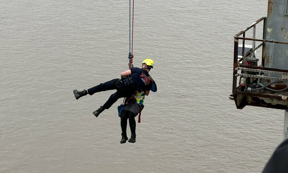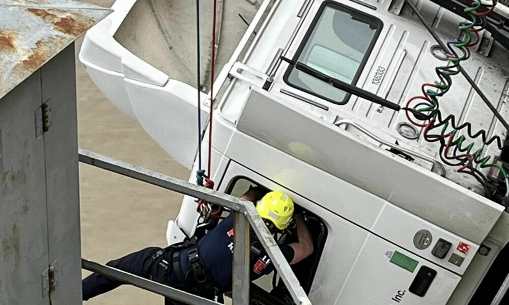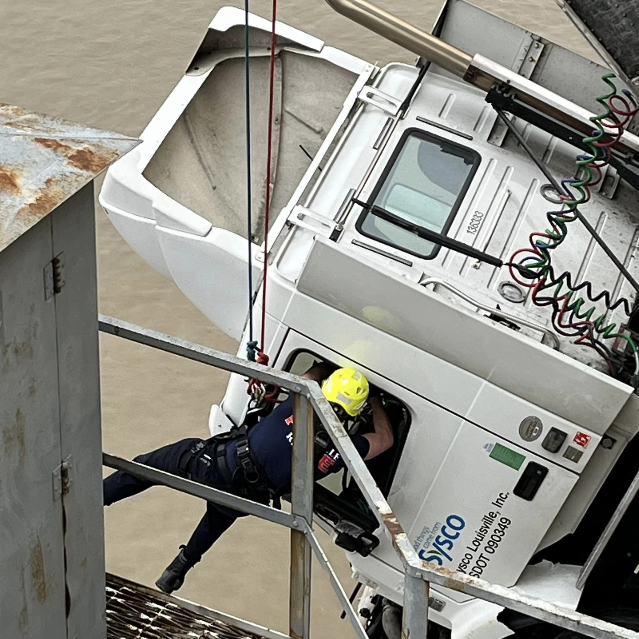 Köprüde asılı kalan TIR’ın kadın şoförü, film sahnesi gibi operasyonla kurtarıldı