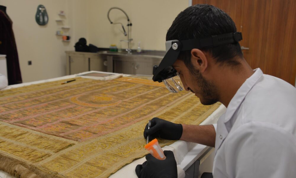 “Kırşehir Müze Müdürlüğüne ait 2nci Abdülhamid dönemi Ahi Sancağının önleyici korumasının Nevşehir Restorasyon Konservasyon Bölge Laboratuvarında tarafından alınması ve bu sayede eserin korunması sağlandı. Replikası Kırşehirde sergilenen eser, özgün halinin korunması ve sergilenmesi amacıyla Erzurum Restorasyon ve Konservasyon Bölge Laboratuvarına getirildi. Eserdeki en büyük problem, kullanım amacı kaynaklı liflerin mukavemet kaybı yaşaması. Bu sorunu, eser üzerinde renk solması, ayrılma ve kopmalar olarak tespit ettik. Renk analizler, liflerin dayanımına dönük analizler ve element analizleri yaparak yol haritamızı belirledik. Dağılan lifler soğuk buhar ve uygun tekniklerle düzleştirilmeye başlandı. Öncelikle buharla liflerini düzleştiriyoruz. Eserin tüm yüzeyine uygulanacak olan bu işlem çok titiz bir çalışma gerektiriyor. Uygun malzeme ile sağlamlaştırmasını da yapacağız. Eserimiz çok hassas. Çalışmalarımız 2 sene kadar sürer. Destek malzemelerinin boyanma işlemlerini Erzurum Olgunlaşma Enstitüsü ile birlikte yürütüyoruz. Eserimizin en büyük özelliği çift yönlü olması. Hem arkasında hem önünde işlemeler, ayetler ve tuğra var. Bu sebeple büyük dikkat gerektiriyor. Destek malzemelerinin yapılması, restorasyon süreci, yapılacak diğer işlemler tabii ki yorucu ama sonuç için çok heyecanlıyız. Hassas ve disiplinler arası bir çalışma yürüttüğümüz eseri, 2 sene içerisinde tamamlayarak Kırşehir Müze Müdürlüğüne teslim edeceğiz” diye konuştu.