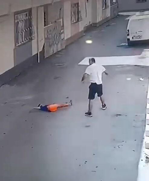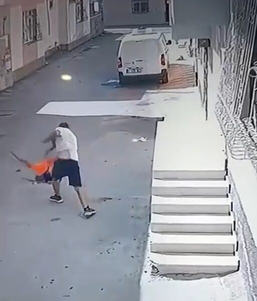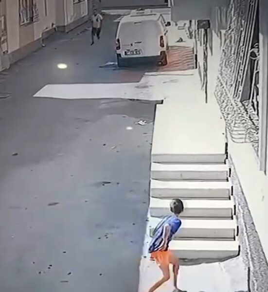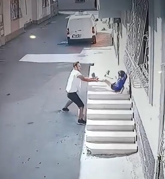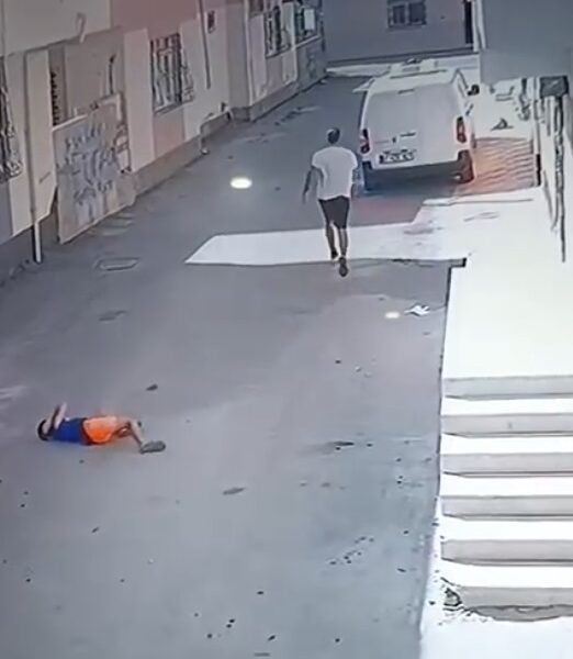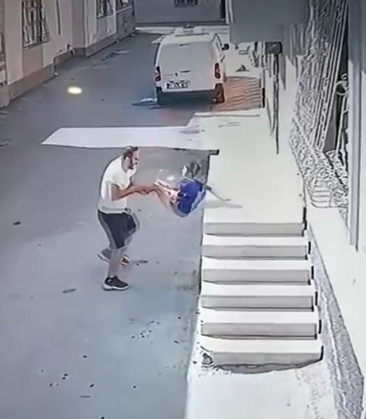 Kovaladığı çocuğu ayak bileğinden tutup yere fırlattı
