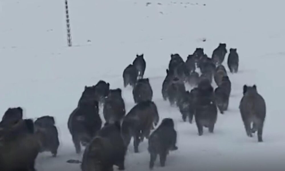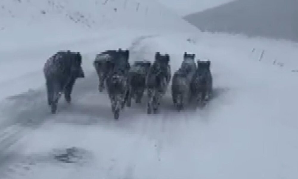 Kar kalınlığının yarım metreye ulaştığı arazide domuz sürüleri de sürücüler tarafından görüntülendi. Ardahan’ın Göle ilçesi ile Kars arasındaki arazide dolaşan domuz sürüsü kara yoluna indi. Bir süre yolda ilerleyen sürü, daha sonra araziye girip gözden kayboldu.