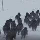 Ardahan’ın Çıldır ilçesinde de araç sürücüleri yiyecek arayan sürüyü görüntüledi. Arazide koşturan sürü, bir süre sonda bölgeden uzaklaştı.