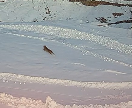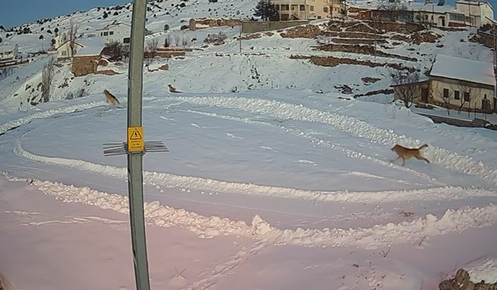 Önceki gün de aynı köyde gezinen bir vaşağın tavşanı avlama anı güvenlik kamerasına yansımıştı. Köyde kış nedeniyle yaşayan kişi sayısının azalması dolayısıyla vahşi hayvanların sık sık bölgeye uğradığı belirtildi.