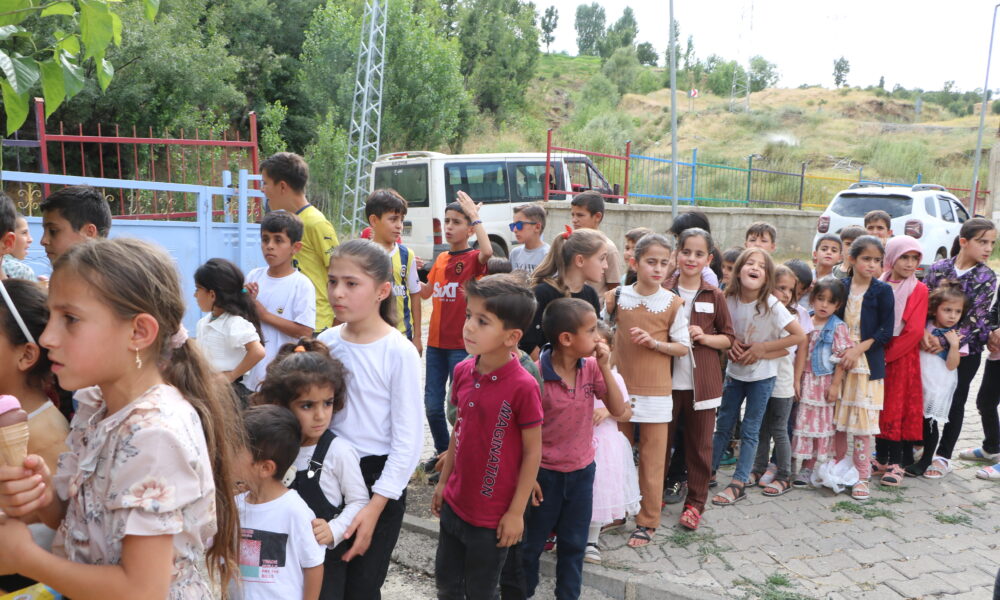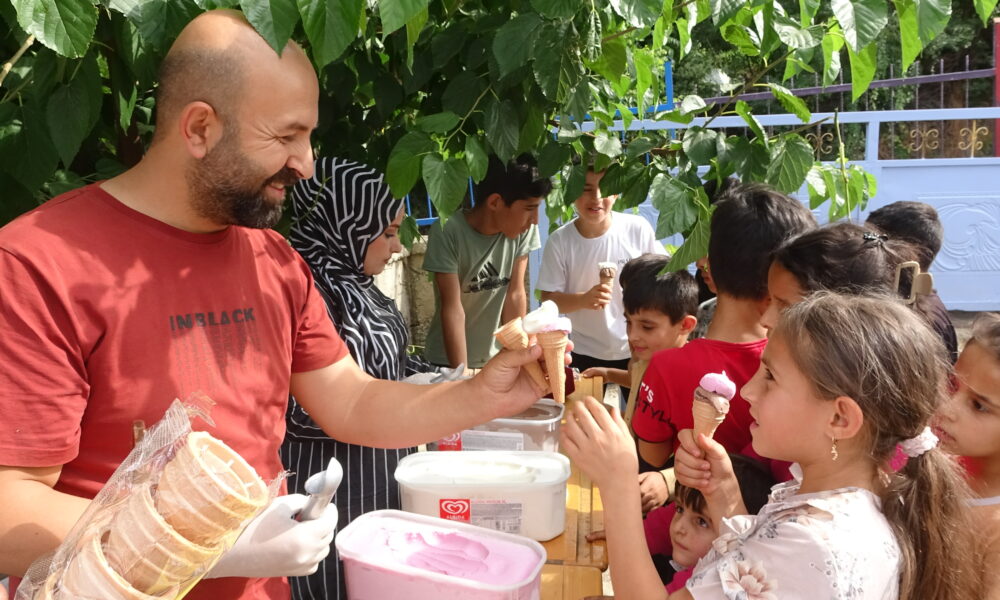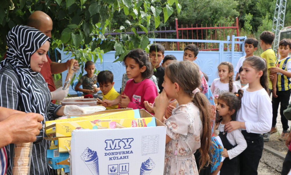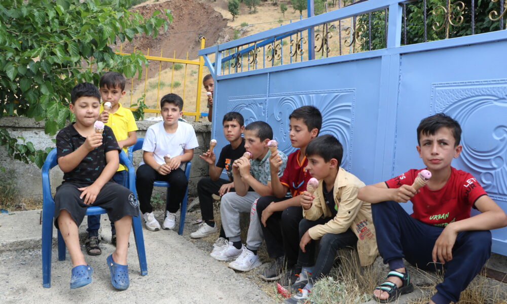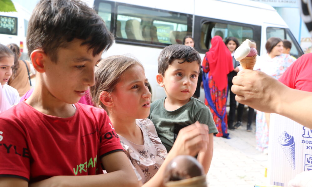 Fahri Geylani ise “Bugün hava sıcaklığının 42 dereceyi gördüğü köyde ve mezrada etkinliğimiz yapmak istedik. Çocuklar çok sevindiler. Gönüllülerimizin sağladığı destekle bugün 300 çocuğa dondurma dağıttık. Köyde market veya bakkal yok. Gittiğimiz bazı köylerde ilk defa dondurma yediğini söyleyen çocuklar bile oluyor” diye konuştu.