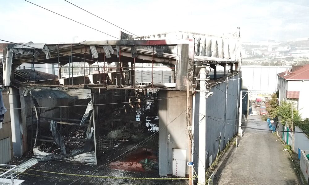 Kocaeli'nin Dilovası ilçesinde kozmetik fabrikası yangın söndürüldükten sonra görüntülendi. Fotoğraf: Ardacan UZUN/Kocaeli,(DHA)