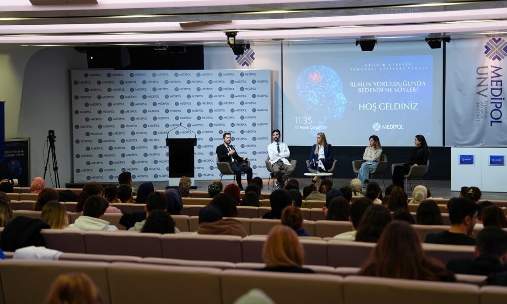 Medipol Mega Üniversite Hastanesi Konferans Salonu’nda düzenlenen ‘Kronik Stresin Bedensel Etkileri’ panelinin moderatörlüğünü Ruh Sağlığı ve Hastalıkları Uzmanı Doç. Dr. Taha Can Tuman üstlendi. Prof. Dr. Mehmet Ağırman, Doç. Dr. Buse Çağla Arı, Uzm. Dr. Sena İnal ve Uzm. Dr. Rahime Gök kronik stresin kaslardan bağışıklığa, cilt sağlığından beyin fonksiyonlarına kadar uzanan etkilerini anlattı.