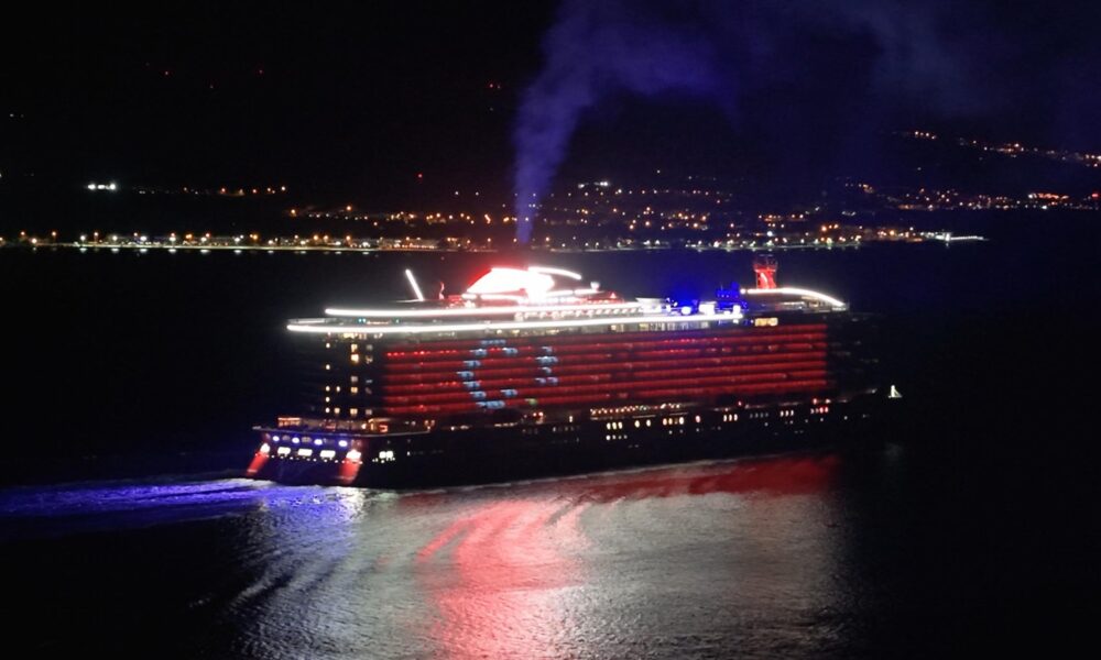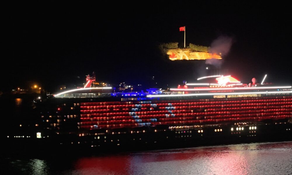 Kruvaziyer, gövdesine Türk bayrağı yansıtarak Çanakkale’yi selamladı