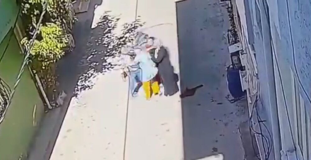 Kucağında çocuğuyla yürüyen anneyi 3 kadının darbettiği anlar kamerada