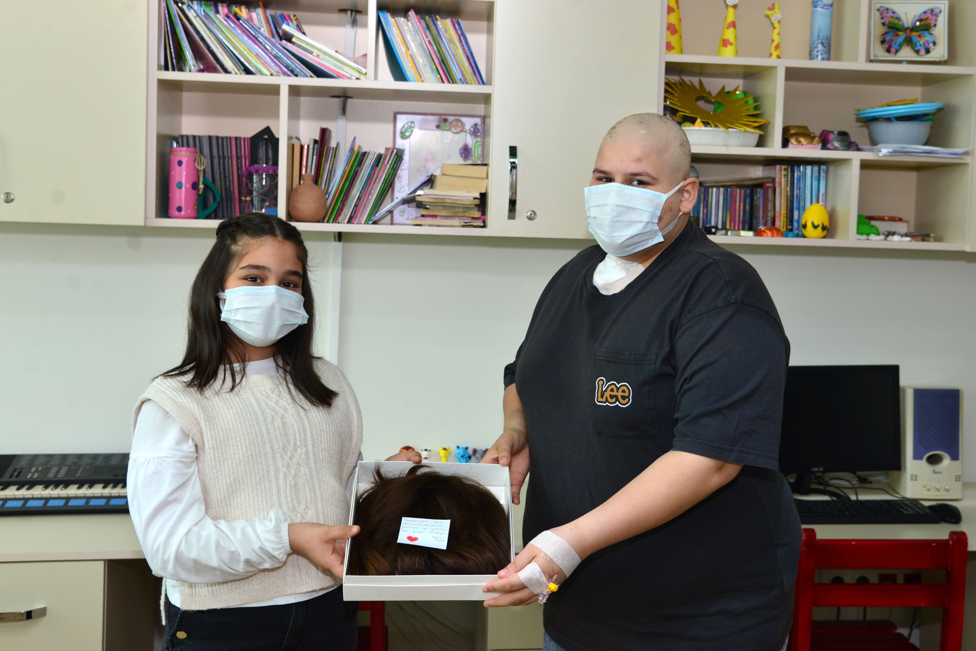 MERSİN’de 10 yaşındaki Azra Özbek, 3 yıl boyunca sabırla uzattığı saçlarını kestirerek Onkoloji Hastanesi Çocuk Hematoloji ve Onkoloji Bilim Dalında tedavi gören 15 yaşındaki Ayten Özkan’a peruk olarak hediye etti.Mersin Üniversitesi (MEÜ) Sağlık Kültür ve Spor Daire Başkanlığında görev yapan Fatma Özbekin kızı Azra, kadın kuaförlüğü yapan babası Zeki Özbek’in iş yerinde kadınların saçlarına verdiği önemi görünce tedavi süreçlerinde saçını kaybeden bir hastaya saçlarını hediye etmek istedi. Özbek çiftinin girişimleriyle kızları Azranın saçları, Onkoloji Hastanesi Çocuk Hematoloji ve Onkoloji Bilim Dalında tedavi gören Ayten Özkan’a peruk olarak hediye edildi. Özbek, Ayten Özkan’a saçlarıyla umut olduğu için çok mutlu olduğunu kaydetti. Saçlarını hediye ettiği için Özbek’e teşekkür eden Ayten Özkan ise “Azra’ya çok teşekkür ediyorum. İyi ki böyle bir hediye verdi bana. Zamanla saçlarıma alışacağım. Çok mutlu ve duyguluyum” dedi.DUYARLI OLMAYA ÇAĞIRIYORUMAyten Özkan’ın babası Levent Özkan, kızının bu hediye ile çok mutlu olduğunu belirterek, “Bu konuda tüm vatandaşlarımızı duyarlı olmaya çağırıyorum. Kızım çok mutlu oldu. Çocukları sevindirmek herkesin görevi olmalı. Kızımın mutlu olduğunu görmek beni çok duygulandırdı. Babası olarak her zaman yanındayım. Azra’ya ve ailesine de çok teşekkür ediyorum kızımı mutlu ettikleri için” diye konuştu.ÇOK DUYGULUYUZFatma ve Zeki Özbek çifti ise kızlarının hayalini gerçekleştirdiği için çok mutlu olduklarını söyledi. Fatma Özbek, “Kızım hayalini gerçekleştirmek için bir adım attı. Çok güzel bir düşünce. Aile olarak çok duyguluyuz. Bu süreçte bizim için uğraşan ve kızımın hayalini gerçekleştirmesine yardımcı olan herkese çok teşekkür ediyorum. Ayten’i de mutlu etmiş olmak bizi çok mutlu ediyor” dedi. Zeki Özbek ise kızlarının bu düşüncesinden dolayı çok duygulandığını ve bu tarz bağışların yaygınlaşmasını umduğunu söyledi.ÇOK SEVİNÇLİYİZAyten Özkan’ın tedavi gördüğü hastanenin Çocuk Hematoloji ve Onkoloji Bilim Dalı öğretim elemanlarından Prof. Dr. Selma Ünal ve Dr. Öğr. Üyesi Feryal Karahan ise çocukluk çağı lösemileri nedeniyle tedavi alan adölesan yaş grubunun en büyük kaygılarının dış görünüşlerinde ve özellikle de saçlarında meydana gelebilecek olan değişiklikler olduğunu belirtti. Dr. Öğr. Üyesi Feryal Karahan, “Azra Özbek’in hayali, yaklaşık bir aydır bilim dalımızda tedavi almakta olan Ayten için bu noktada bir umut oldu. Ayten, bizlere en çok Saçlarıma ne olacak? Dökülecek mi? ve Saçlarım ne zaman çıkacak gibi sorular soruyordu. Saçlarını kaybedeceği için çok ciddi kaygıları vardı ve bunun için çok üzülüyordu. Son birkaç günkü heyecanlı bekleyişinin ardından ise bugün bu bağıştan dolayı çok mutlu ve istediği oldu. Azra’nın saçlarını kendi yaşıtlarına bağışlamak istemesi de çok duygulandırıcı. Her ikisi adına da çok sevinçliyiz. Umarım bu bağış örnek bir davranış olarak yaygınlaşır. Azra Özbek ve ailesine bu düşünceli davranışları ve duyarlılıkları için ayrıca teşekkür ediyoruz” ifadelerini kullandı.