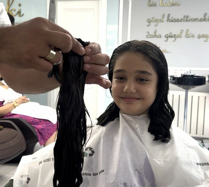 Küçük Azra, saçlarını onkoloji hastasına peruk olarak hediye etti