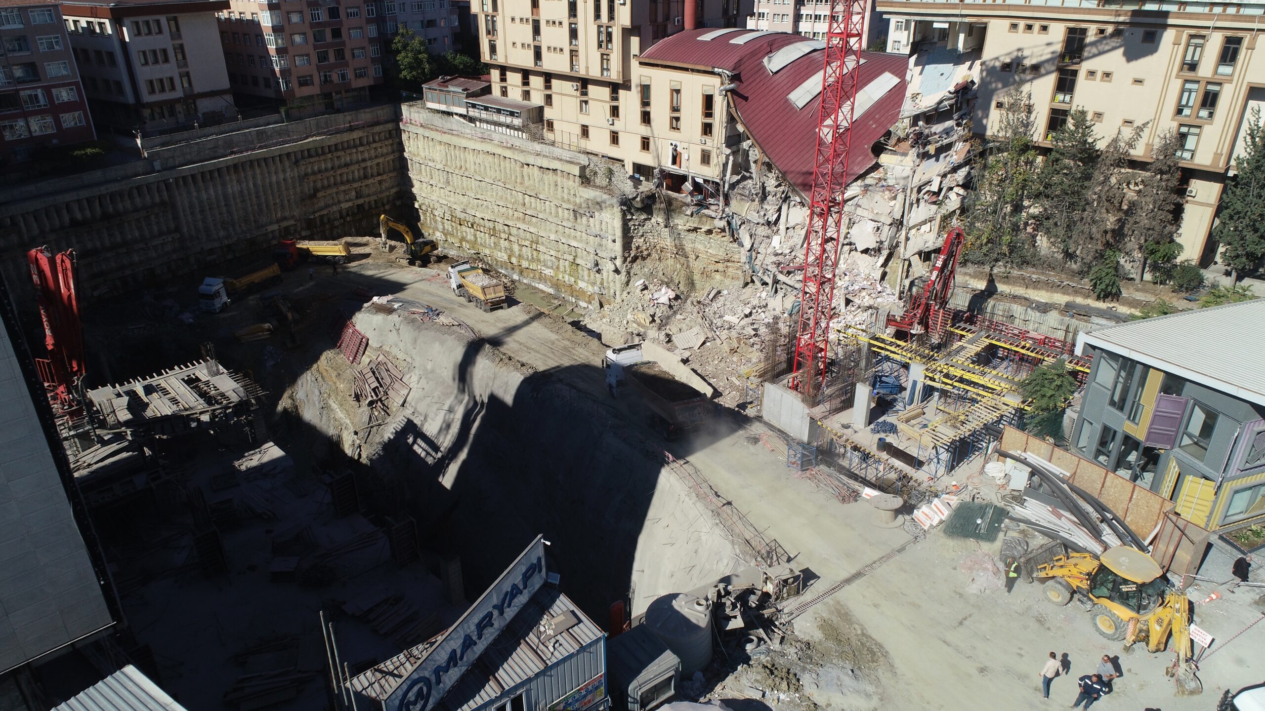 Küçükçekmece’de bir inşaatın istinat duvarının çökmesi nedeniyle tedbir amacıyla boşaltılan yan taraftaki 3 katlı Arel Üniversitesi’nin binası da çöktü. Üniversitenin ana binasında ise büyük hasar meydana geldi. Bölgede yapılan incelemelerin ardından, güvenlik amacıyla 1 öğrenci yurdu ve 128 dairenin olduğu 6 apartman tahliye edildi. Yapılan incelemelerin ardından sabah saatlerinden itibaren yeniden başlayan dolgu işlemi devam ediyor. Arka arkaya sıralanan onlarca hafriyat kamyonu inşaat alanına hafriyat taşıyor. Yapılan çalışmalar havadan görüntülendi.