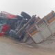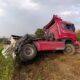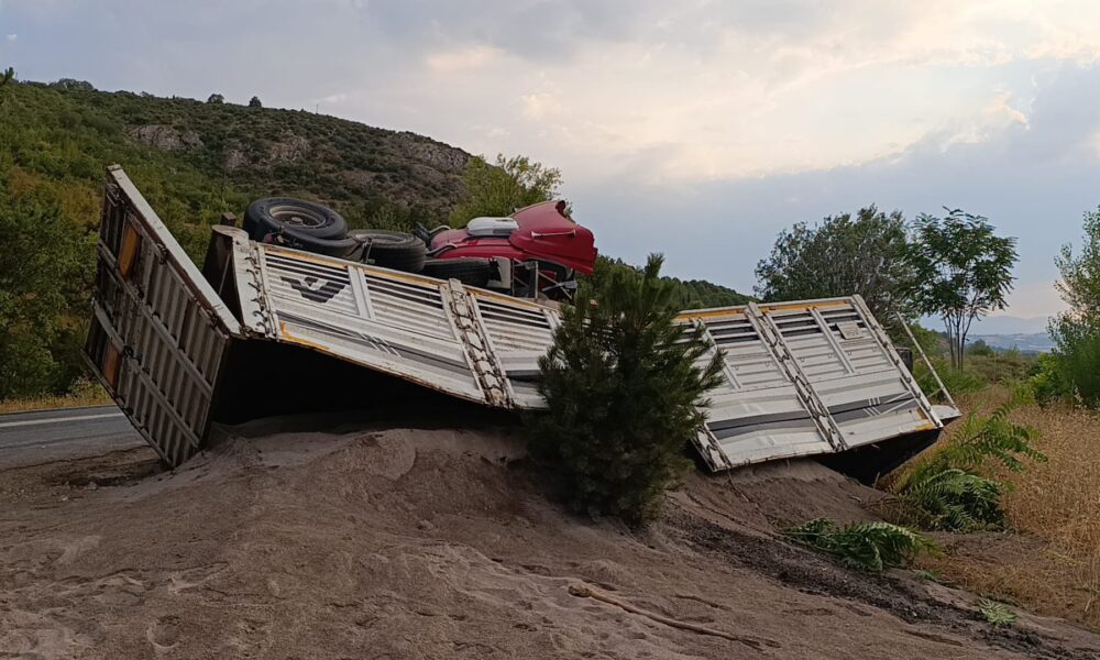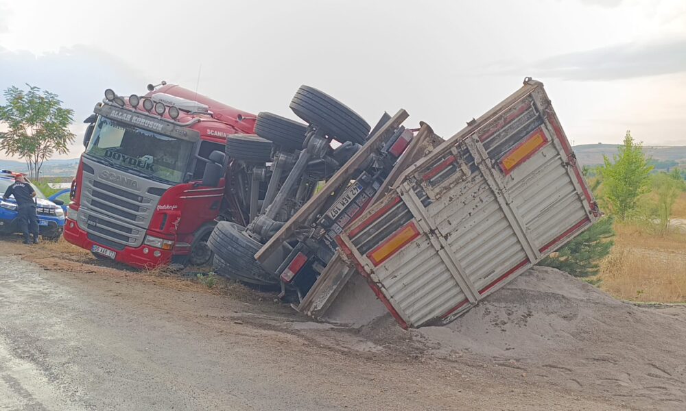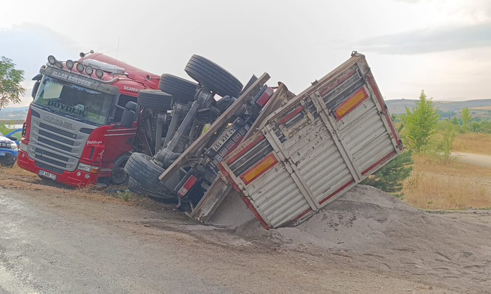 Kum yüklü TIR devrildi, sürücü yaralandı