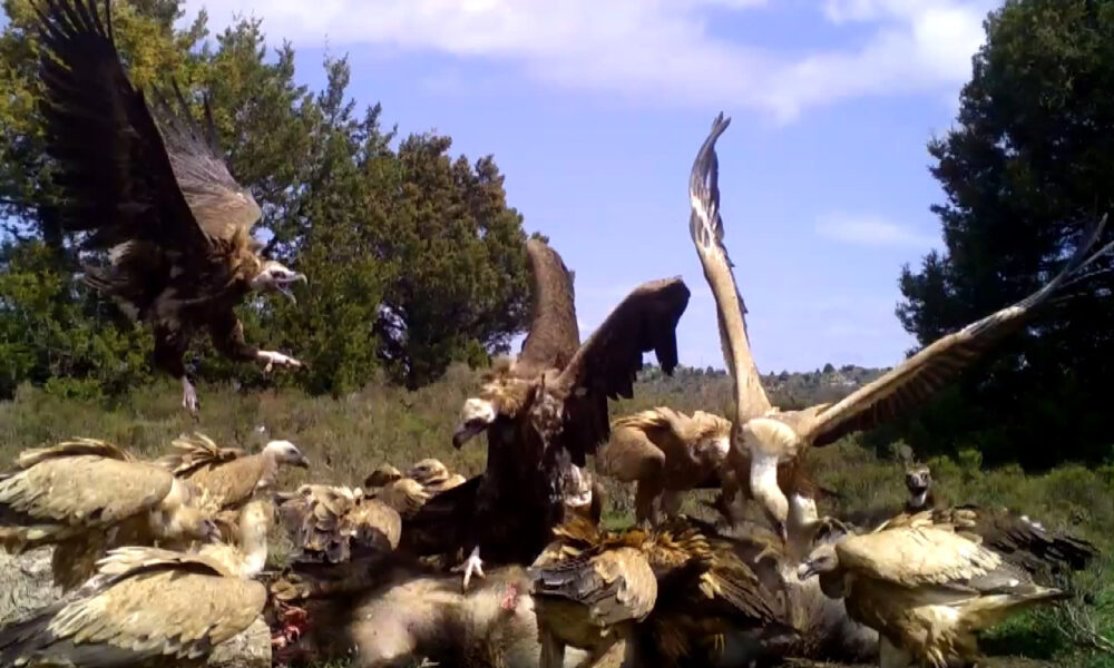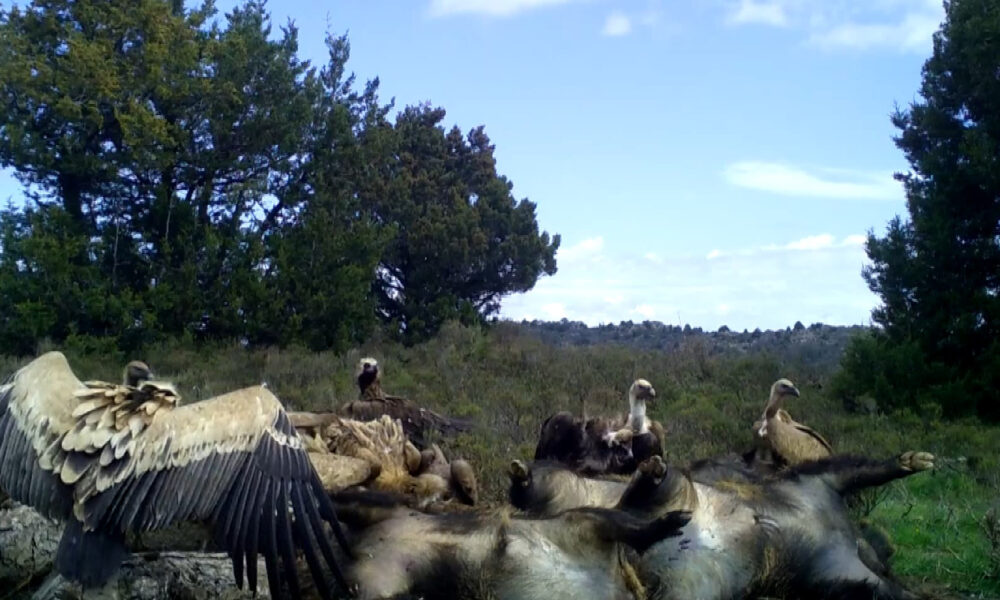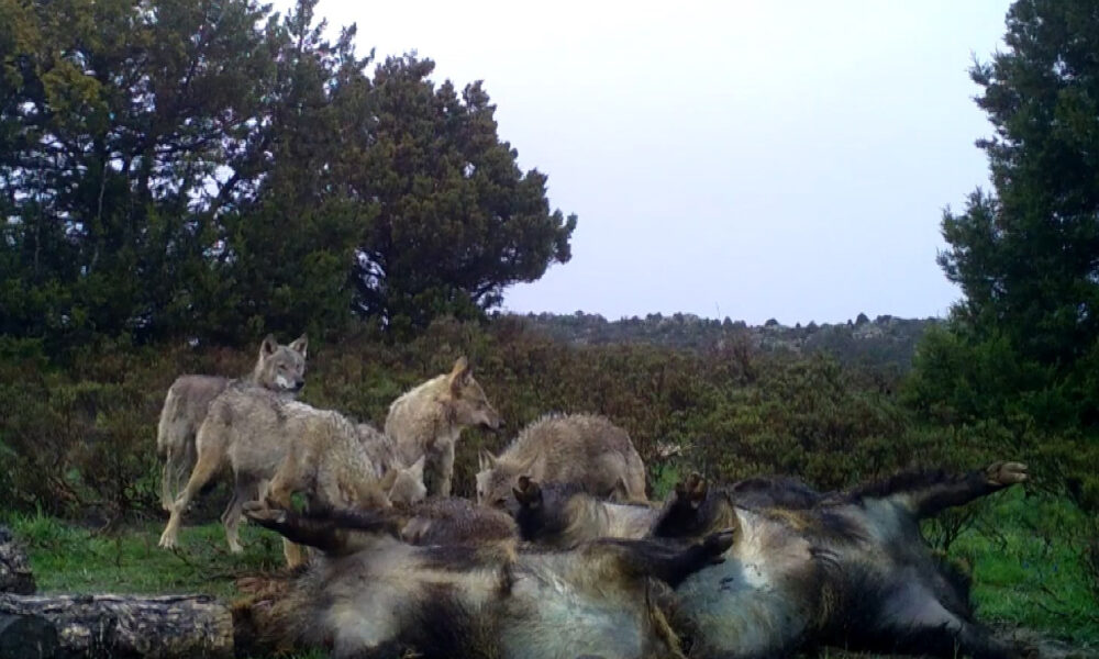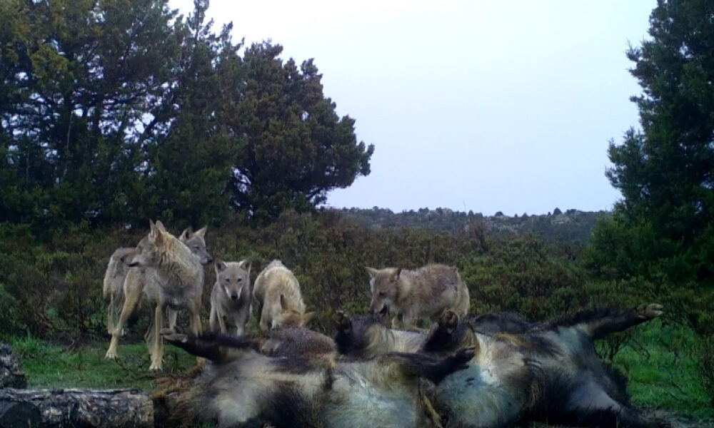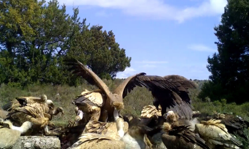 Kurtlar ve akbabalar beslenirken fotokapanla görüntülendi