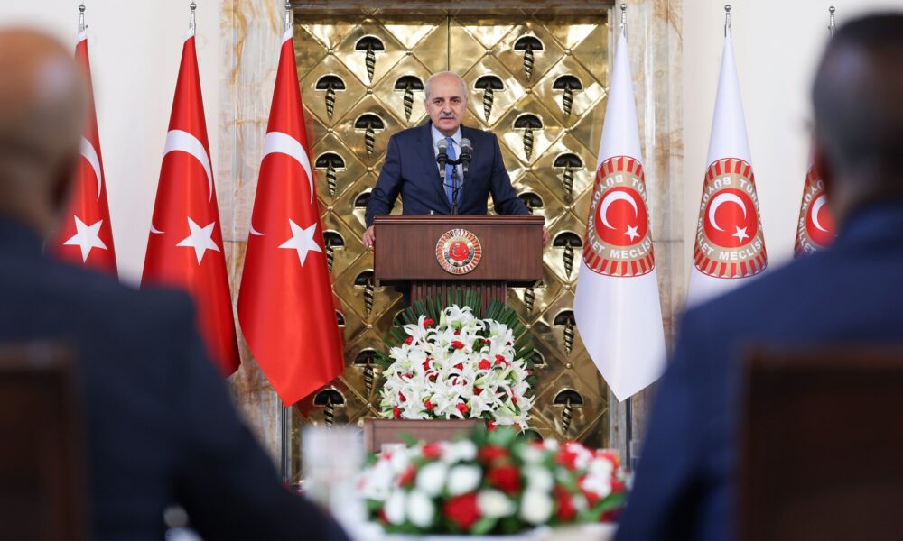 Kurtulmuş, Kıbrısta iki devletli çözümden başka bir yolun kalmadığını kaydederek, “Varlığını tamamlamış olan Kuzey Kıbrıs Türk Cumhuriyeti için bundan sonraki safha uluslararası alanda tanınırlığını artırmaktır. Biz Türkiye olarak her vesileyle, her platformda özellikle kardeş Türk cumhuriyetler olmak üzere Kuzey Kıbrıs Türk Cumhuriyetini tanımak ve kendi parçaları halinde görebilmek için iş birliğimizi artırmaya gayret ediyoruz. Yürekten inanıyorum ki önümüzdeki dönem Kuzey Kıbrıs Türk Cumhuriyetinin uluslararası tanınırlığı fevkalade yükselecek ve Kıbrıs milletler ailesinde hak ettiği yüksek yeri layıkıyla alacaktır. Biz Adada barışı, bir arada yaşamayı, Rumların da huzur içerisinde yaşamasını istiyoruz ancak bunu isterken asla milli kimliğimizden vazgeçmiyor, Kuzey Kıbrıs Türklerinin yok sayılmasını asla kabul etmiyoruz. Rumlar on yıllar boyunca diyor ki, Biz varız, siz yok olun. Biz de Kıbrıslı Rumlara diyoruz ki, Biz varız, siz de var olun ve bizim varlığımıza bir tehdit oluşturmayın diyoruz” ifadelerini kullandı.