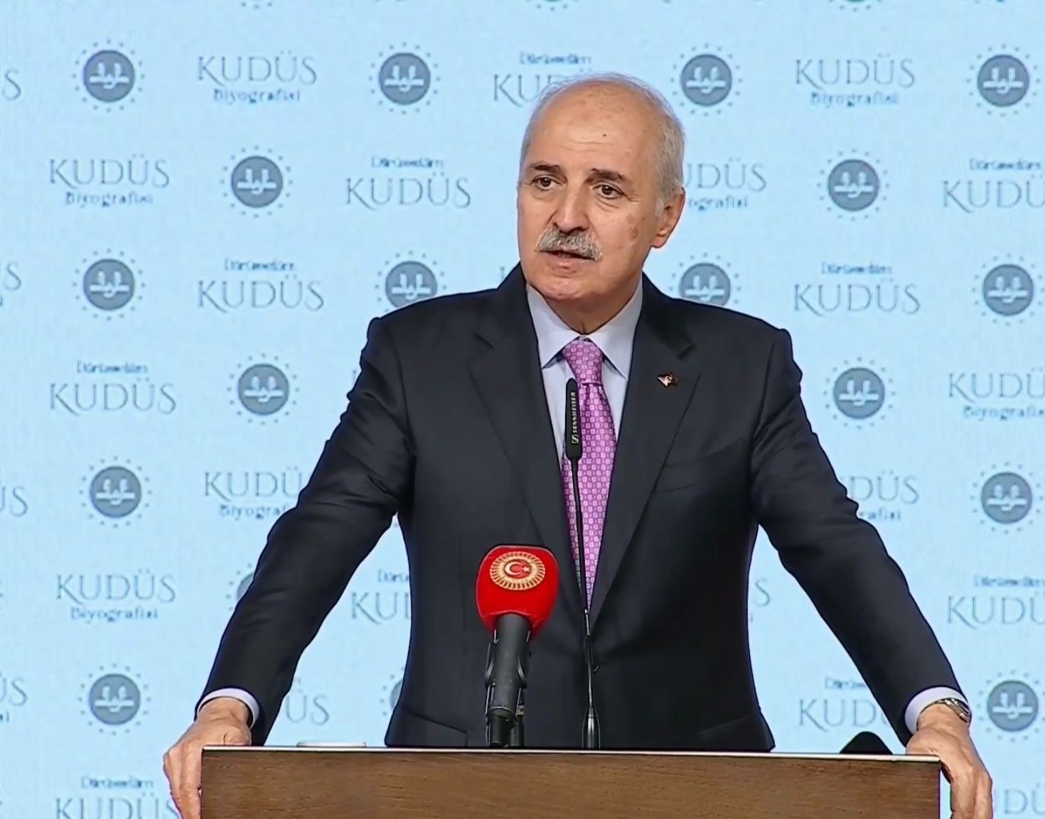 Egemen bir Filistin devletinin kurulacağına inandığını söyleyen Kurtulmuş, “Başkenti Kudüs olan 1967 sınırlarında tam manasıyla toprak bütünlüğü sağlanmış, egemen bir Filistin devleti mutlaka ama mutlaka kurulacaktır. Çünkü bu sadece biz istediğimiz için değil, Filistin halkı bunu çoktan hak ettiği için gerçekleşecektir. Çünkü, bu biz sadece böyle olmasını istediğimiz için değil, ecdadın bu kadar büyük çalışmalarının bereketinin yüzü suyu hürmetine gerçekleşecektir. Gazzede ağlayan her bir kadının çığlığı aslında Kudüsün duvarlarına vuran bir kurtuluş müjdesidir. Gazzede kanı damlayan her bir erkeğin yere düşen kanı, her bir çocuğun açlıktan kıvranan bedeni, Kudüsün duvarlarında çınlayan bir özgürlük türküsüdür. Allah Kudüse özgürlük vermeyi, Kudüsü özgür kılmayı, Kudüsü özgür görmeyi hepimize nasip eylesin diyorum” diye konuştu.