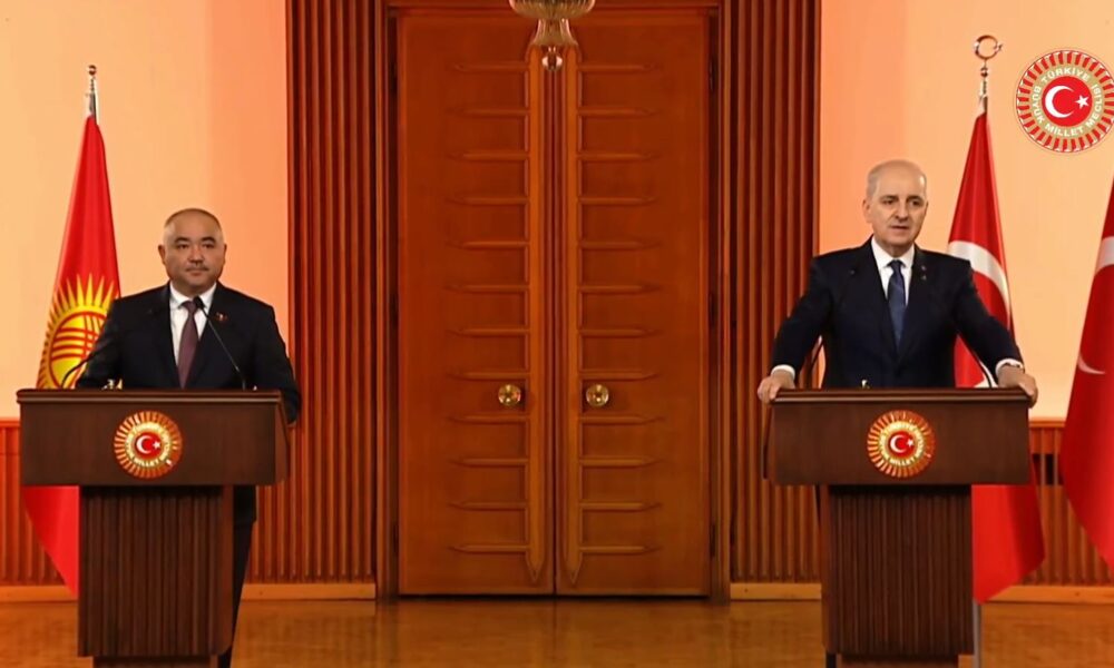 Cumhurbaşkanı Recep Tayyip Erdoğanın, Kırgızistan ziyaretinde imzalanan anlaşmaları hatırlatan Kurtulmuş, “Bu ziyarette, stratejik ilişkiler düzeyine çıkartılan ikili ilişkilerle Türkiye ve Kırgızistan ilişkileri yeni bir döneme geçmiştir. Bizler de parlamentolar arasındaki ilişkileri artırarak, özellikle son dönemde gelişen ilişkileri örnek bir hale gelmesi için tüm gücümüzle gayret sarf edeceğiz. Ayrıca önümüzdeki dönemde Kırgızistan, TÜRKPA Genel Kurulu Başkanlığı’nı Kazakistandan devralacak. Yine Kırgızistanın 2027-2028 dönemi için Birleşmiş Milletler Güvenlik Konseyi Geçici Üyeliği adaylığını da önemsiyoruz. Türkiye olarak bütün platformlarda ve özellikle Kırgızistana göre daha güçlü olduğumuz coğrafyalarda geçici üyelik adaylığının kabul edilmesi için her türlü çabayı ortaya koyacağız. Ülkelerimiz arasındaki ilişkilerin özellikle ekonomik alanda güçlenmesi gerektiğinin şart olduğu kanaatindeyiz. İki ülkenin Cumhurbaşkanlarının, ortak hedef olarak koyduğu 5 milyar dolarlık ticaret hedefi ne yazık ki halen 1,5 milyar seviyesinde. İki ülkenin potansiyeline baktığımız zaman bu hedefin çok kısa bir süre içerisinde gerçekleşmesi mümkündür” diye konuştu.