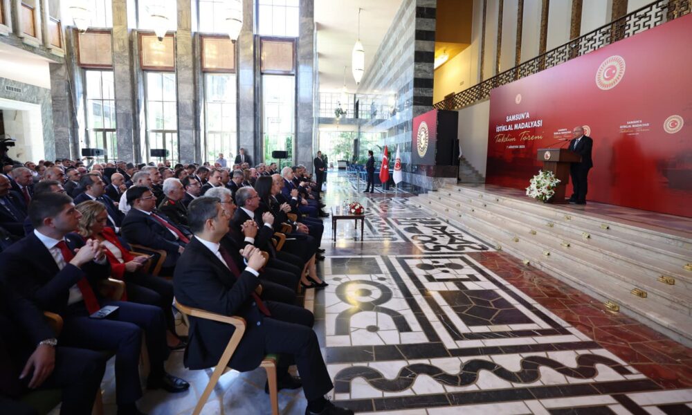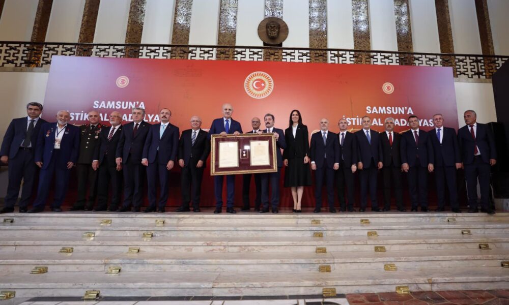 TBMM Başkanı Numan Kurtulmuş, TBMM Şeref Holünde düzenlenen Samsuna İstiklal Madalyası Takdim Törenine konuştu. Törene; Kurtulmuşun yanı sıra Milli Savunma Bakanı Yaşar Güler, Meclis Başkan Vekili Tekin Bingöl, Samsun Valisi Orhan Tavlı, grup başkan vekilleri, milletvekilleri ile çok sayıda davetli katıldı. Törende, Samsuna 1924 yılında TBMM tarafından verilmesi kararlaştırılan ancak tevdi edildiğine dair herhangi bir bilgi veya belgeye ulaşılamayan İstiklal Madalyasını ve beratı, TBMM Başkanı Numan Kurtulmuş ile Milli Savunma Bakanı Yaşar Güler, Samsun Valisi Orhan Tavlıya takdim etti.