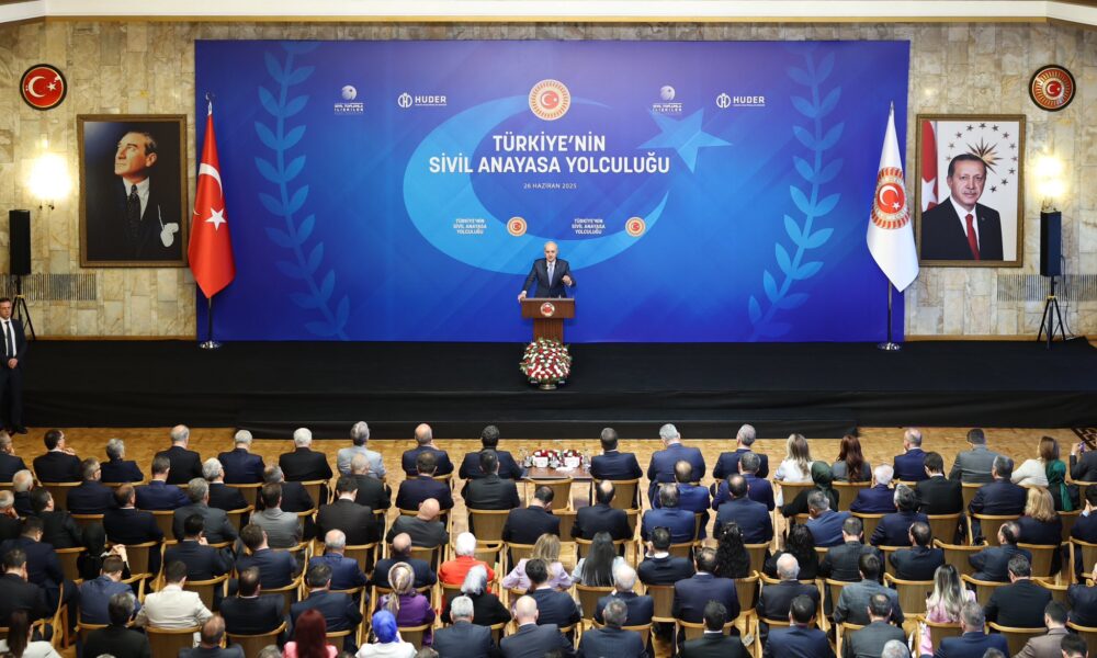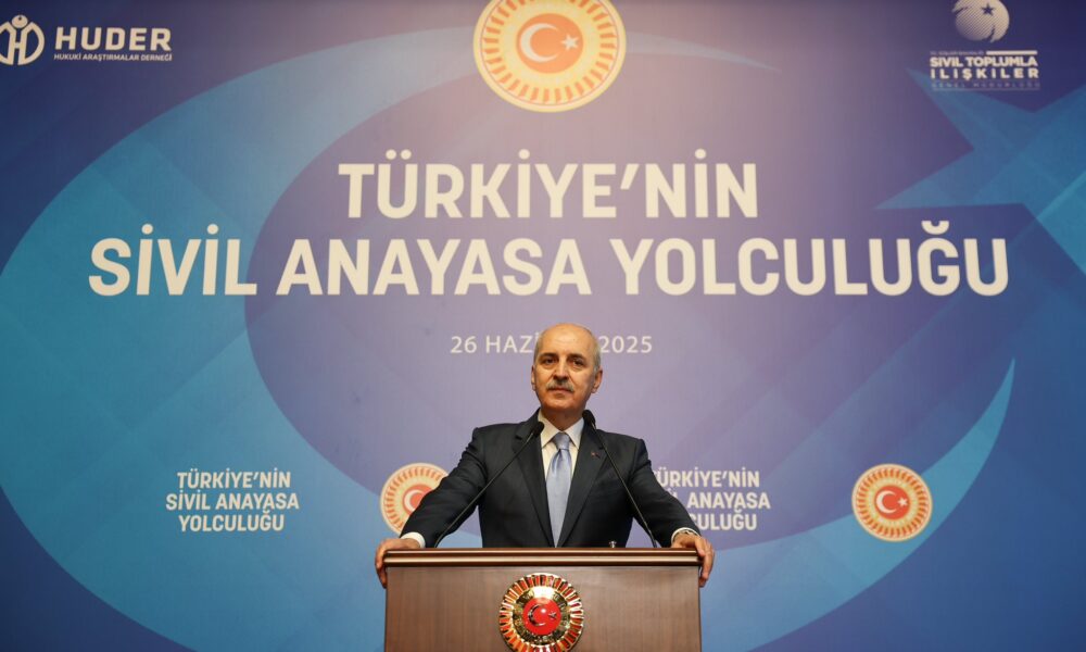 TBMM Başkanı Numan Kurtulmuş, Türkiyenin uzun yıllardır yeni anayasa konusunu tartıştığını belirterek, “12 Eylül Anayasasının kabul edilmesinin hemen arkasından tartışmaya açılmış, her platformda, siyaset zemininde, hukuk ve akademi camiasında çok yoğun tartışmaların konusu olmuştur. Dünyada yeni bir dönemin başındayız. Önümüzdeki dönem gösteriyor ki dünyada çok sert rüzgarlar esecek. Hatta rüzgarların nereden ve hangi sertlikle eseceğinin dahi belli olmayacağı bir döneme giriyoruz. Bu anlamda ekonomik değişimler, küresel siyasetteki dinamiklerin değişmesi, toplumsal yapı ve teknolojinin güçlü bir değişim sürecine girmesi, özellikle bizim gibi dünyadaki bütün değişim rüzgarların en sert şekilde estiği, bütün büyük güçlerin en sert şekilde mücadele ettiği bir coğrafyada yer alan ülkemiz için çok daha dikkatli olunması gereken bir döneme işaret ediyor. Bu yeni dönemin şartları içeresinde nerede, hangi gelişmelerin olacağının bilinmediği, sadece savaşlar ve çatışmaların da değil, köklü toplumsal değişimlerin nereye evrileceğinin tahmin edilemeyeceği bir dönemde, ayaklarımızı çok güçlü bir şekilde basmak zorundayız” dedi.