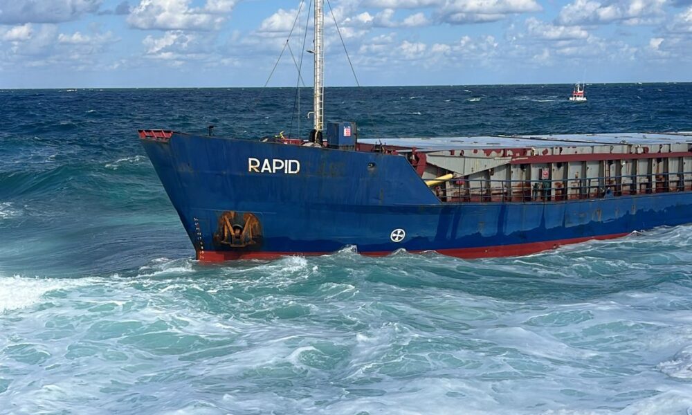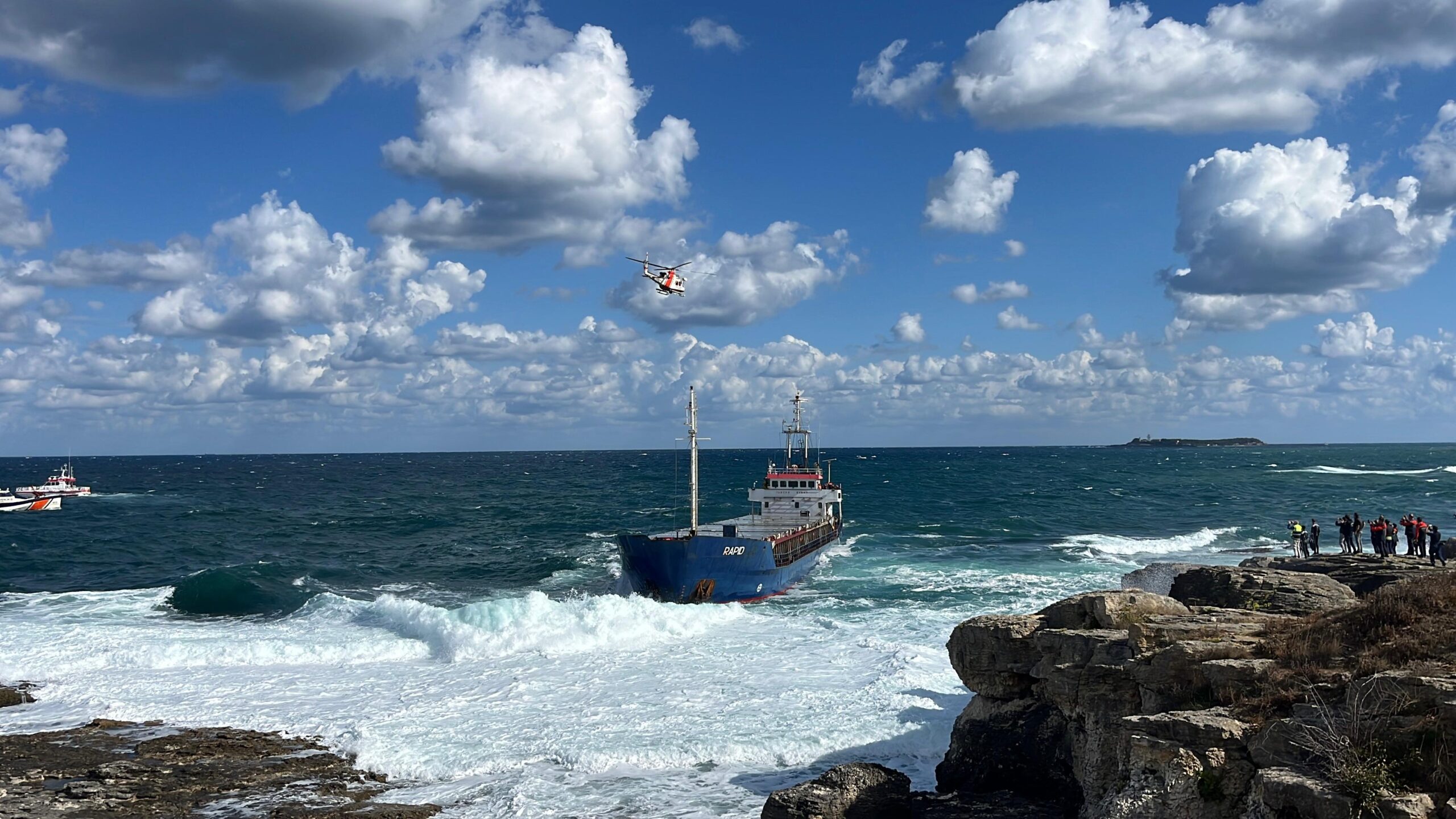 Kuru yük gemisi karaya oturdu; mürettebatı kurtarmak için çalışma başladı