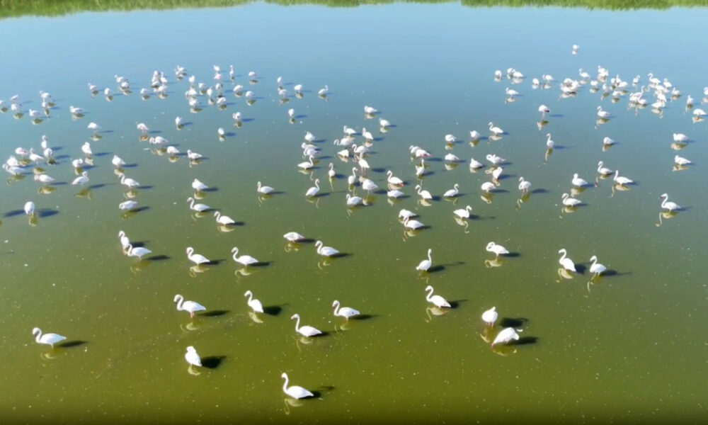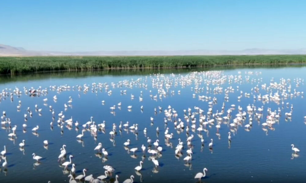 İlkbahar aylarında gelmeye başlayan flamingo sürüsü ve yavrular, su seviyesi azalan gölde dron ile görüntülendi. Anadoluda Allı turna olarak adlandırılan ve konu oldukları türkülerde hasret, özlem ve dert ortağı olarak sembolleştirilen flamingoların geçici konakladıkları gölden sonbahar mevsiminde göç etmesi bekleniyor.