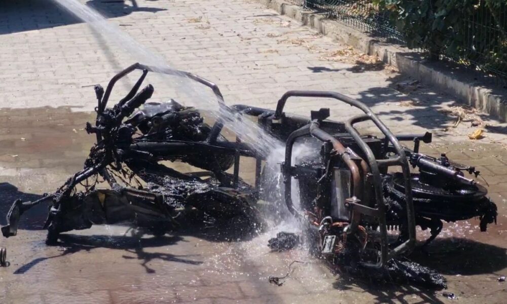 • Bursa’nın İznik ilçesinde kurye olarak çalışan Eray Kırıkoğlu'nun (44) kullandığı elektrikli bisiklet, seyir halindeyken birden alev almaya başladı. Elektrikli bisiklet kullanılamaz hale gelirken, yanma anı bir iş yerinin güvenlik kamerası tarafından kayd