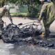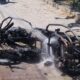 Kuryenin elektrikli bisikleti seyir halindeyken alev aldı