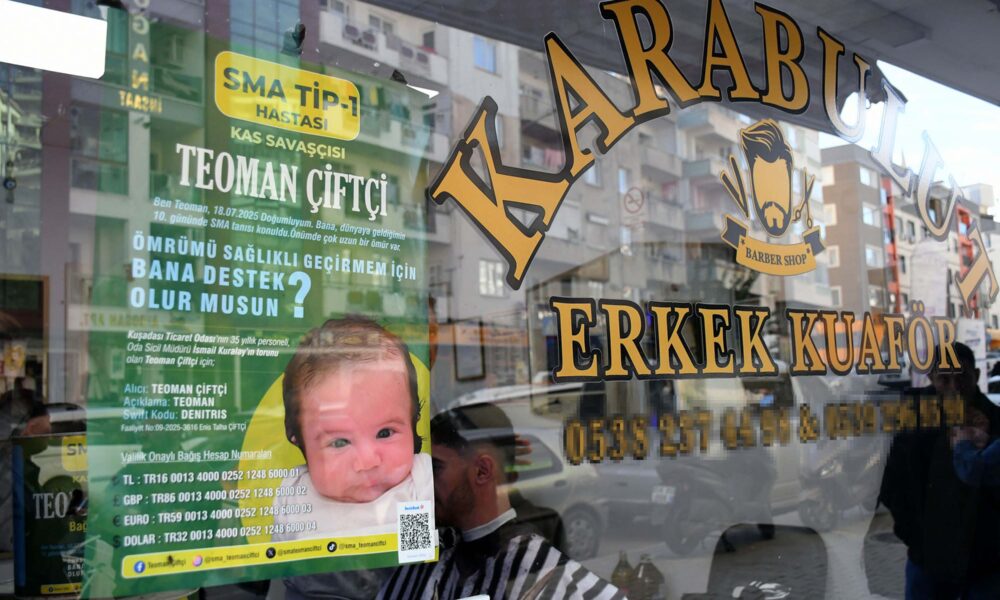 Kuşadasında yaşayan Yağmur-Enis Talha Çiftçi çiftinin 5 aylık bebekleri Teomana, doğduktan 10 gün sonra özel bir hastanede yapılan topuk kanı testinden, SMA Tip 1 teşhisi konuldu. Çiftçi çifti, yaptıkları araştırmada, SMA Tip 1 hastaları için Dubaide uygulanan ve yüzde 95 oranında başarıya ulaşan tedavinin olduğunu öğrendi. Aile, bebekleri için 12 Eylülde Aydın Valiliği’nin verdiği izinle yardım kampanyası başlattı. 1 milyon 817 bin dolar tutan gen tedavisi masraflarını toplama hedefiyle başlatılan kampanyada, şu ana kadar yüzde 60a ulaşıldı. Teoman bebek için Kuşadası esnafı da seferber oldu. İkiçeşmelik Mahallesindeki 9 erkek kuaförü, 1 günlük cirolarını Teoman’ın Aydın Valiliği onaylı yardım kampanyasına bağışladı.
