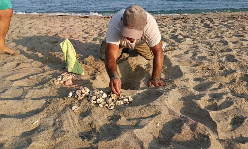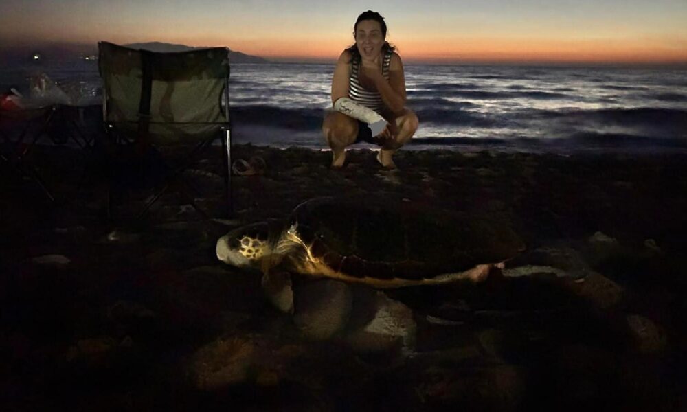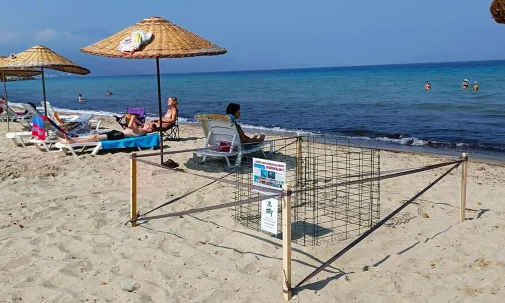 Kuşadası’nda yılın ilk caretta caretta yavruları sürpriz yuvadan çıktı