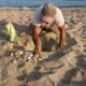 • Aydın’ın Kuşadası ilçesinde, kuluçka dönemlerini tamamlayan yılın ilk caretta caretta yavruları yumurtalarından çıkıp, denizle buluştu. Bahattin Sürücü (önde).Fotoğraf: Arşiv/Aydın,(DHA)