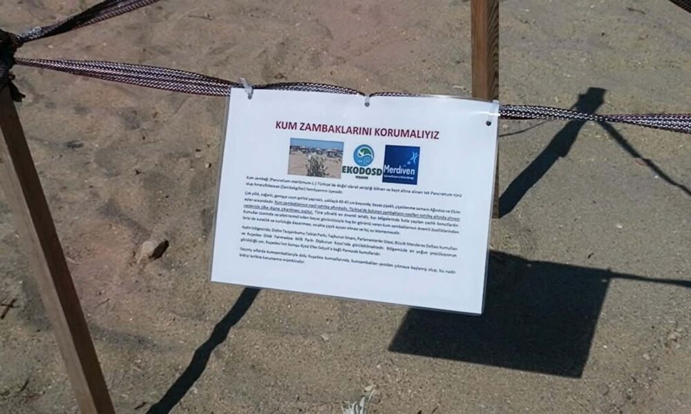 Kuşadası’nda yaklaşık 20 kilometre boyunca uzanan kumsalların bulunduğunu belirten EKODOSD Başkanı Bahattin Sürücü, “Yaz döneminde kumsalları binlerce insan kullanıyor. Ancak doğru ve temiz kullanılmayan plajlarda yoğun bir çevre kirliliği görülüyor. Kirletilen kumsalların temizliği için araçlar kullanılıyor. Kumsalların üzerinde sürekli araçların dolaşması da kum zambaklarının yetişme alanlarına zarar veriyor. Eğer Kuşadası sahillerini temiz tutarsak kum zambakları yine açar” diye konuştu.
