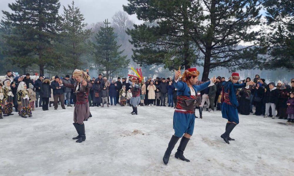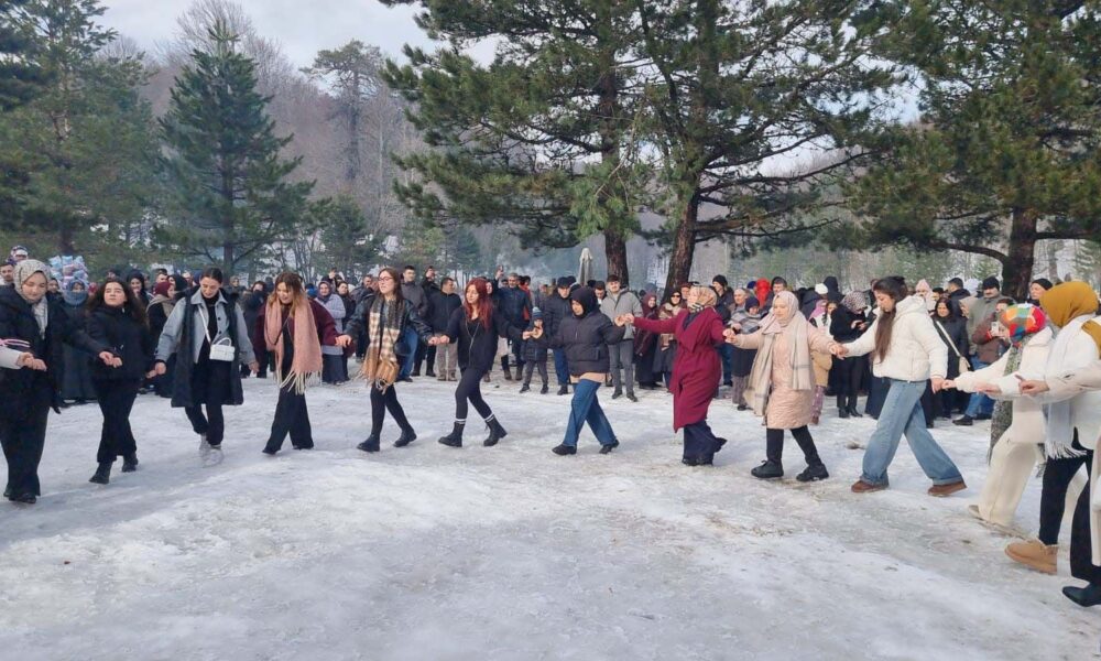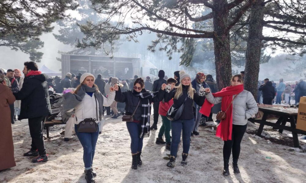 Festivale katılanlar sucuk ekmek alarak derneklere katkıda bulunurken, kar manzarası eşliğinde düzenlenen etkinlikler renkli görüntülere sahne oldu.