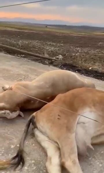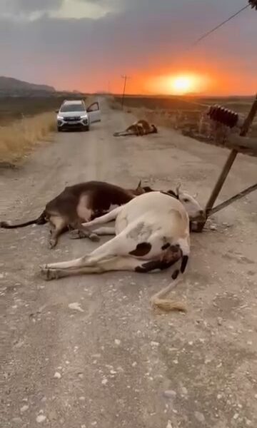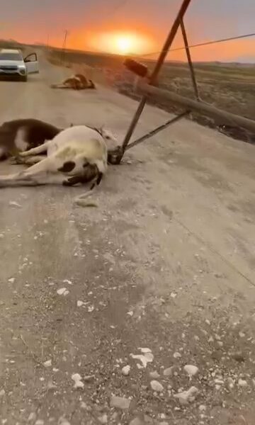 Kuvvetli rüzgar elektrik direğini devirdi; 6 inek akıma kapılıp öldü