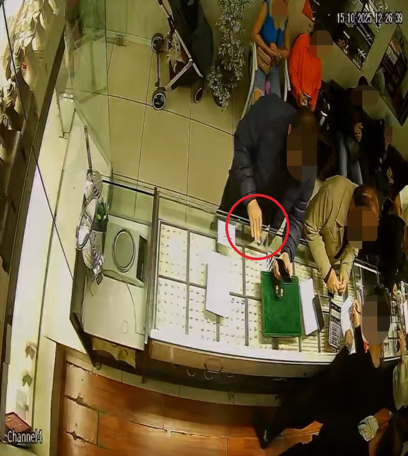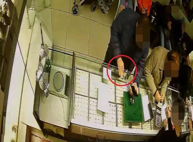 Şüphelinin altını gizlice alıp kuyumcudan ayrıldığı anlar, iş yerinin güvenlik kamerasına yansıdı.