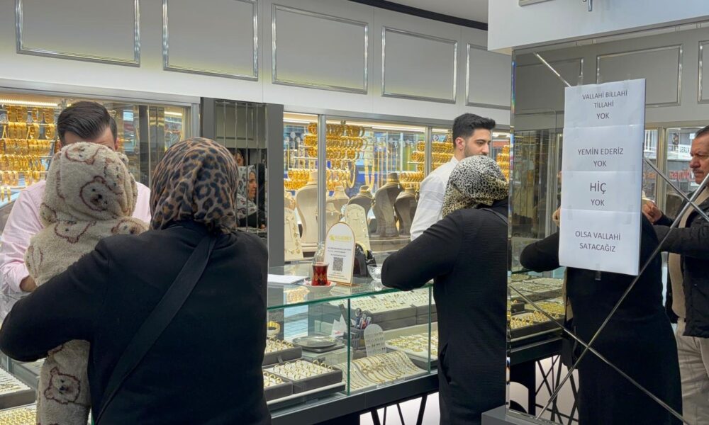 Haftaya yüzde 2,9’luk düşüşle başlayan altın fiyatları, tasarrufunu altın ile yapanları hareketlendirdi. Güne 6 bin 313 TL’den başlayan gram altının gün içerisinde 6 bin TL sınırının altına gerilemesiyle birlikte vatandaşlar sabahın erken saatlerinden itibaren kuyumculara akın etti. Taleplere yetişmekte zorlandığını ifade eden kuyumcu Hüseyin Kılıç, iş yerinin camına Vallahi billahi tillahi yok, Yemin ederiz yok, Hiç yok, Olsa vallahi satacağız yazıları astı.