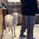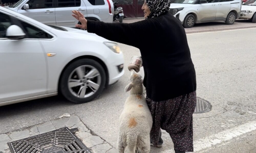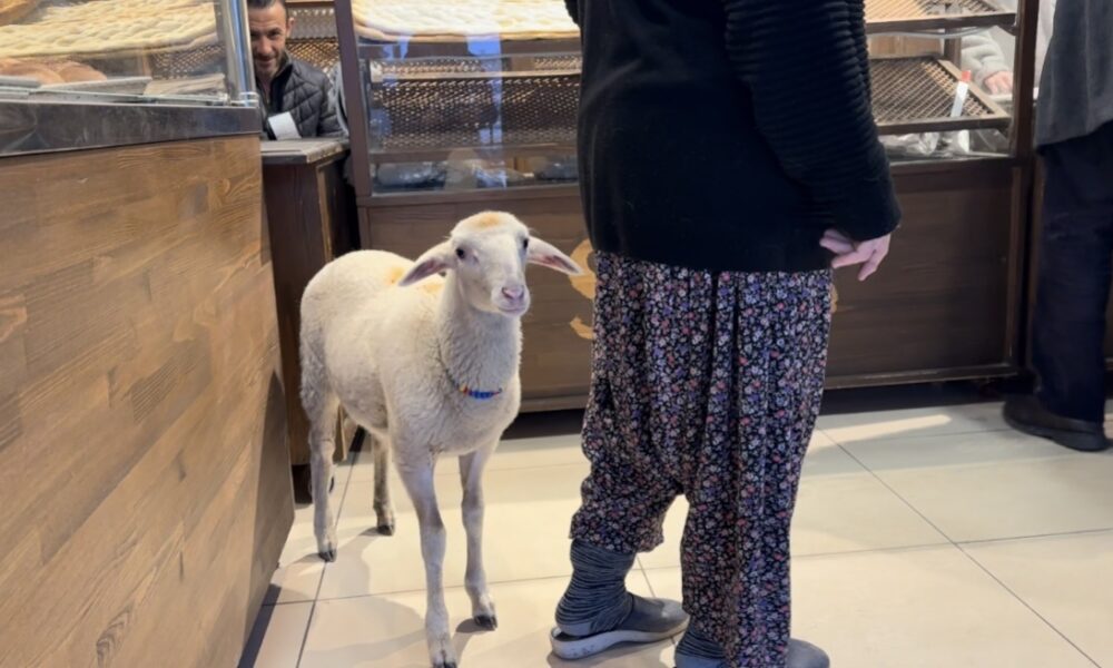 Kuzu ‘Çorap’, yanından ayrılmadığı sahibi ile pide sırasına giriyor