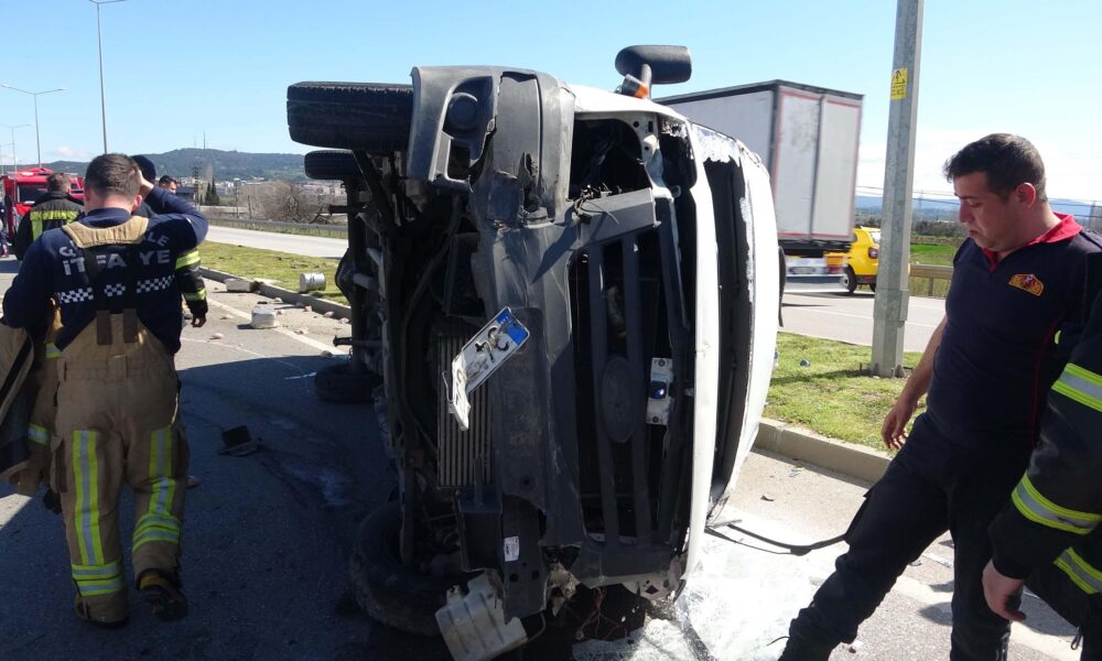 Lastiği patlayan minibüs devrildi, sürücü yaralandı