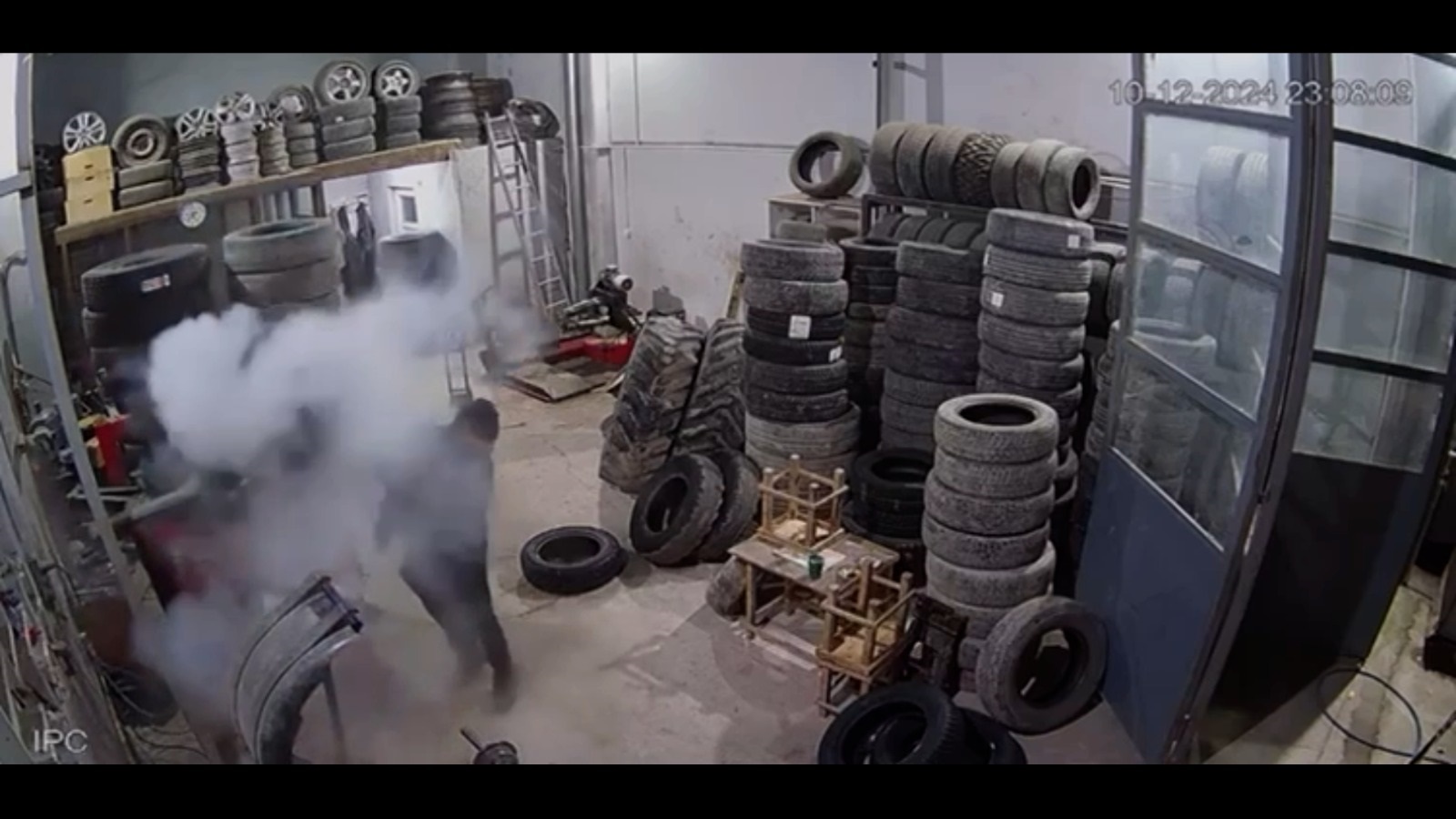 Olay, Gönen ilçesinde Oto Sanayi Sitesindeki lastik tamiri yapılan iş yerinde meydana geldi. İki işçinin tamir ederken şişirmeye çalıştıkları lastiklerden biri patladı. İş yerinin güvenlik kamerasına yansıyan görüntülerde, patlama sesini duyan çalışanların kaçtığı anlar yer aldı. Olayda yaralananın olmadığı belirtildi.
