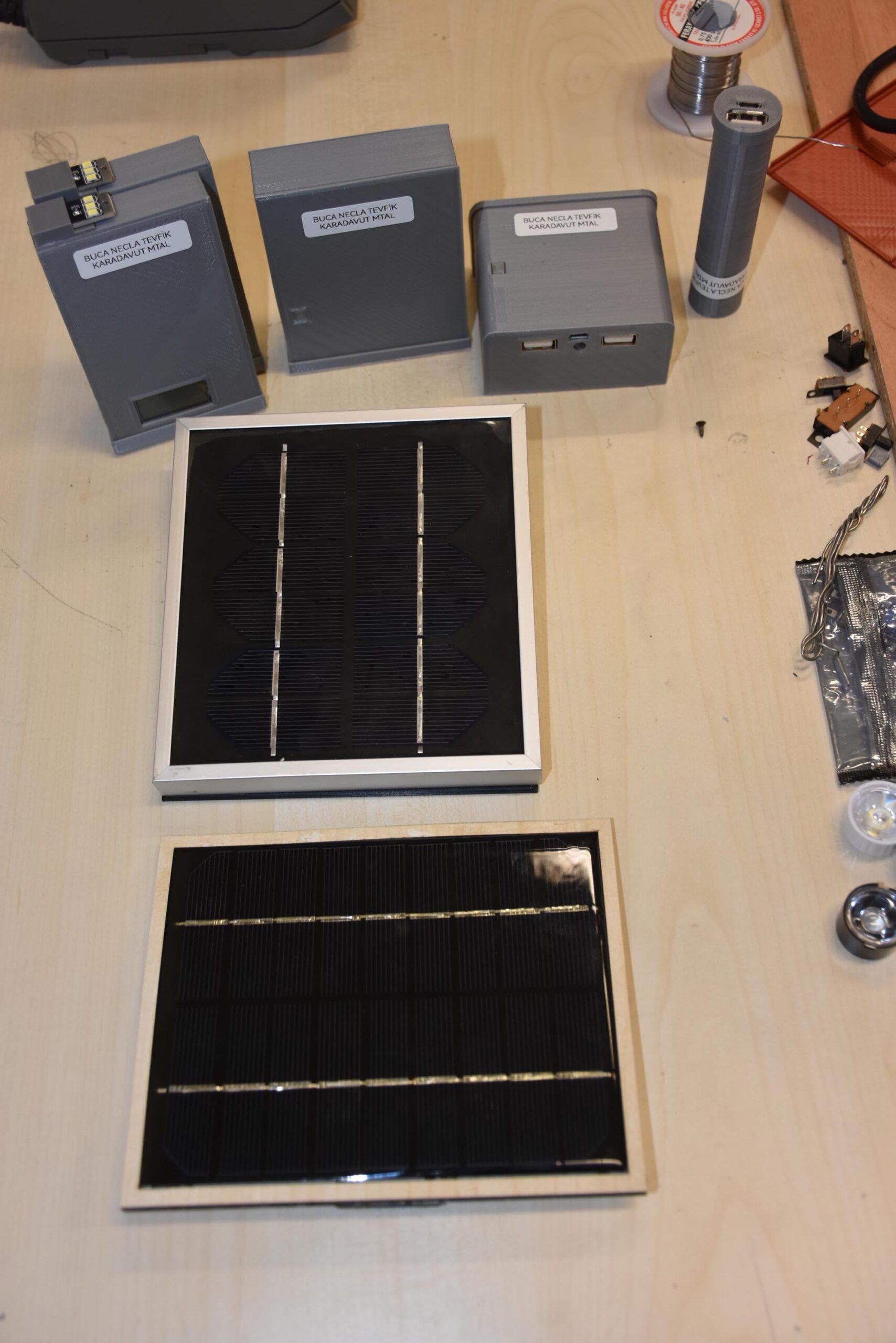 İZMİR’in Buca ilçesindeki Buca Necla Tevfik Karadavut Mesleki ve Teknik Anadolu Lisesi’nde öğretmen ve öğrenciler, depremzedeler için çeşitli boyutlarda güneş enerjili ve ışıldaklı taşınabilir şarj cihazı (powerbank) üretiyor. Kendisi de Adıyamanlı olan okul müdürü Haci Murat Özkılınç, “İmkanlarımız dahilinde yapılan bu güç kaynaklarını deprem bölgesine gönderdik. Bir şarj cihazımız ortalama 4 telefon şarj edebiliyor. Taşınabilir şarj cihazı aynı zamanda güneş enerjisiyle yaklaşık 6 saatte doluyor. Bölgeden bu konuda olumlu dönüş alınca isabetli bir iş yaptığımızı anladık” dedi.