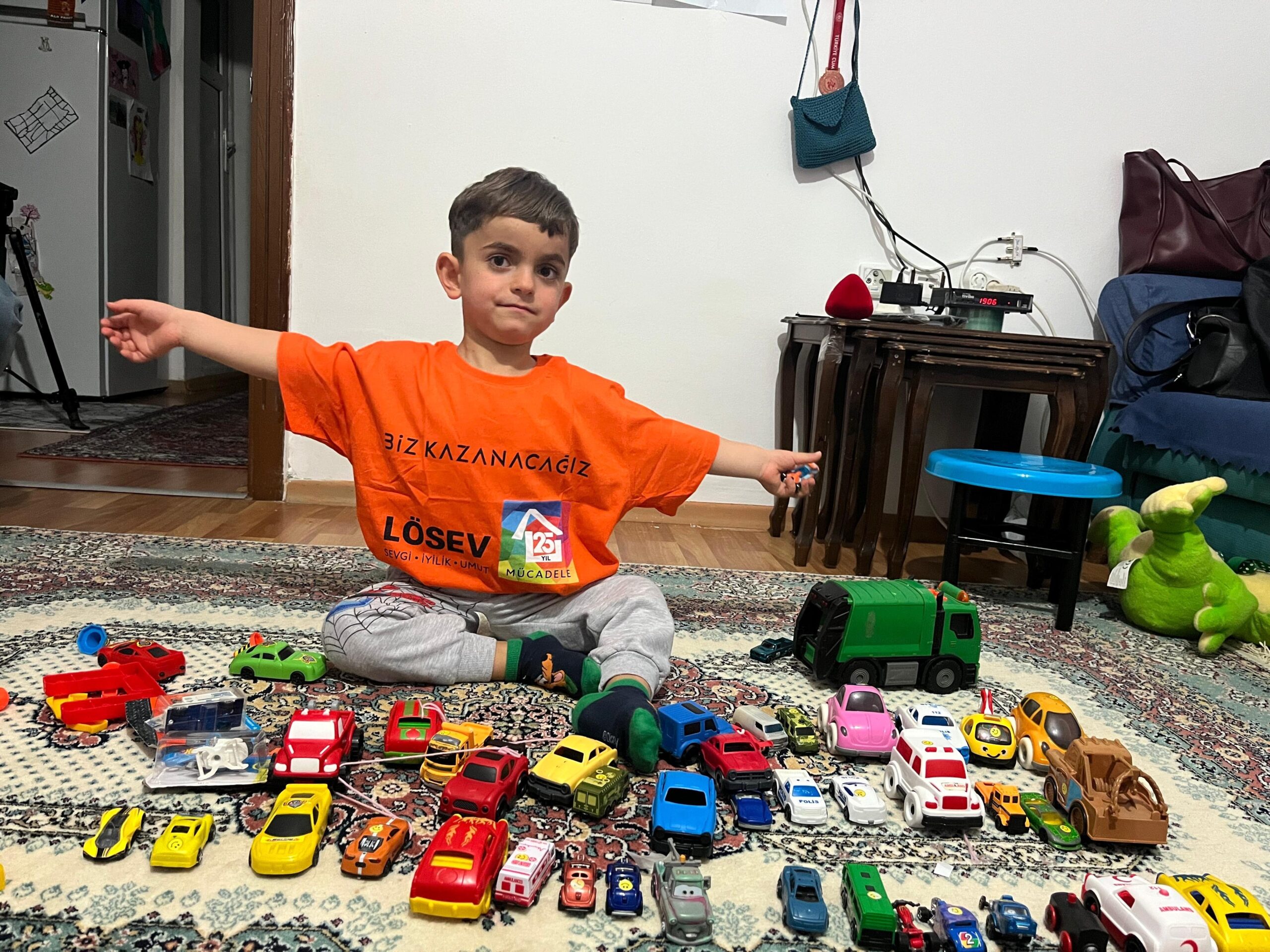 Mert Ayazın babası Tayfun Candemir, ateş şikayetiyle hastaneye başvurduklarını belirterek, “Mert geleceğimiz, sadece bizim değil, ülkemizin geleceği. Bu çocuklar elbette bir gün doktor, polis, memur olacak. Yeri gelecek çöpçü olacak ama vatana hayırlı bir evlat olacak, biz de bunun çabasındayız. Oğlumuza 2023te lösemi tanısı konuldu ama aynı zamanda cücelik rahatsızlığıyla da mücadele ediyor. Arkadaşlarına göre daha kısa olduğunu biliyor. Oğlum çok sosyal bir çocuk. Erkek olduğu için de arabalara ayrıca bir düşkünlüğü var, çok seviyor. Minik arabalardan öte sokaktaki arabaların markasını modelini aklında tutan bir çocuk. Arabaları çok seviyor, haddinden fazla. 50ye yakın küçük oyuncak arabası var. Bunların içinde çöp kamyonları, otobüsler, çekiciler, hepsi var. Araçları sıraya diziyor, çarpıştırıyor, çekiyor. Kendisine bir koleksiyon yaptı. Biz de ona destek oluyoruz. Arabalarıyla oynarken hastalığını unutuyor, daha neşeli mutlu oluyor” diye konuştu.