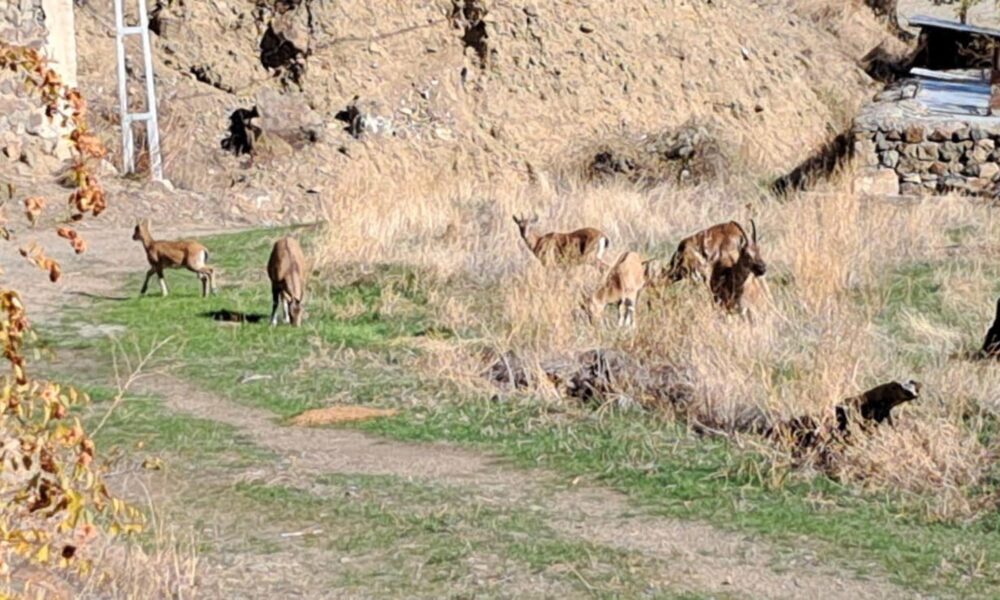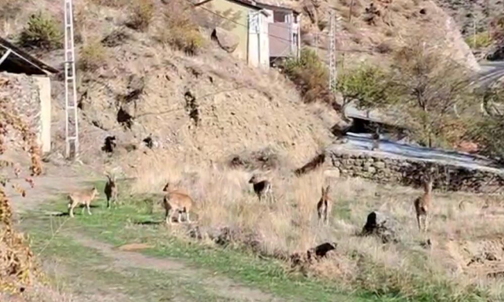Mahalleye inen dağ keçileri, evlerin arasında dolaşıyor