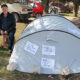 Mahkemenin kira artış kararını protesto için adliyenin karşısına çadır kurdu