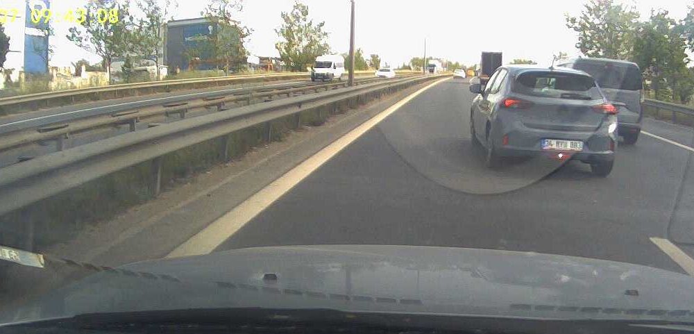 Çayırova’da 7 Mayısta saat 10.00 sırlarında Şekpınar istikametine ilerleyen 34 MYU 883 plakalı otomobilin sürücüsü, makas atarak araçların arasından geçti. Hızla şerit değiştirerek yoluna devam eden sürücü ardından emniyet şeridini kullanarak ilerledi.