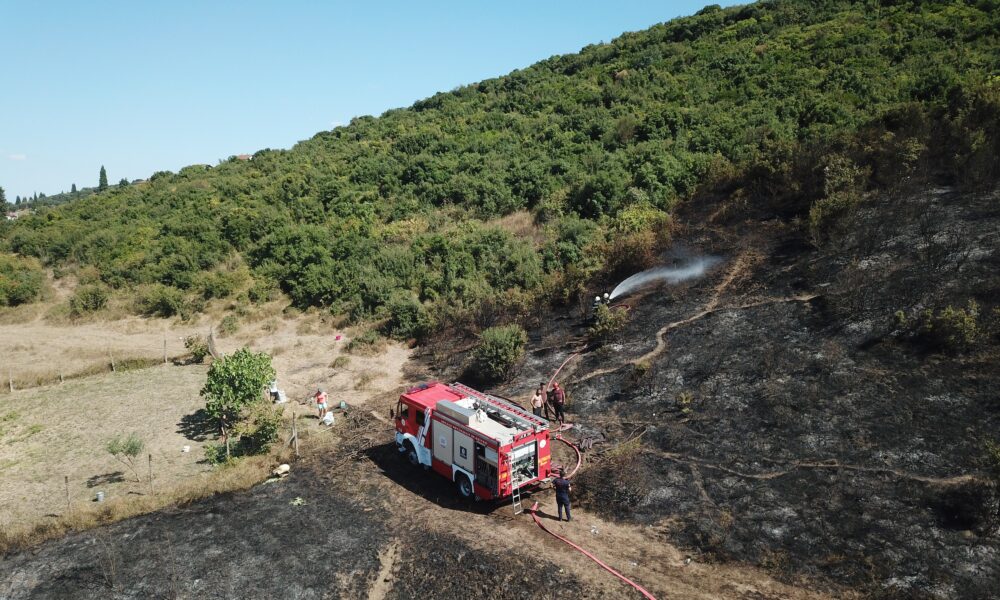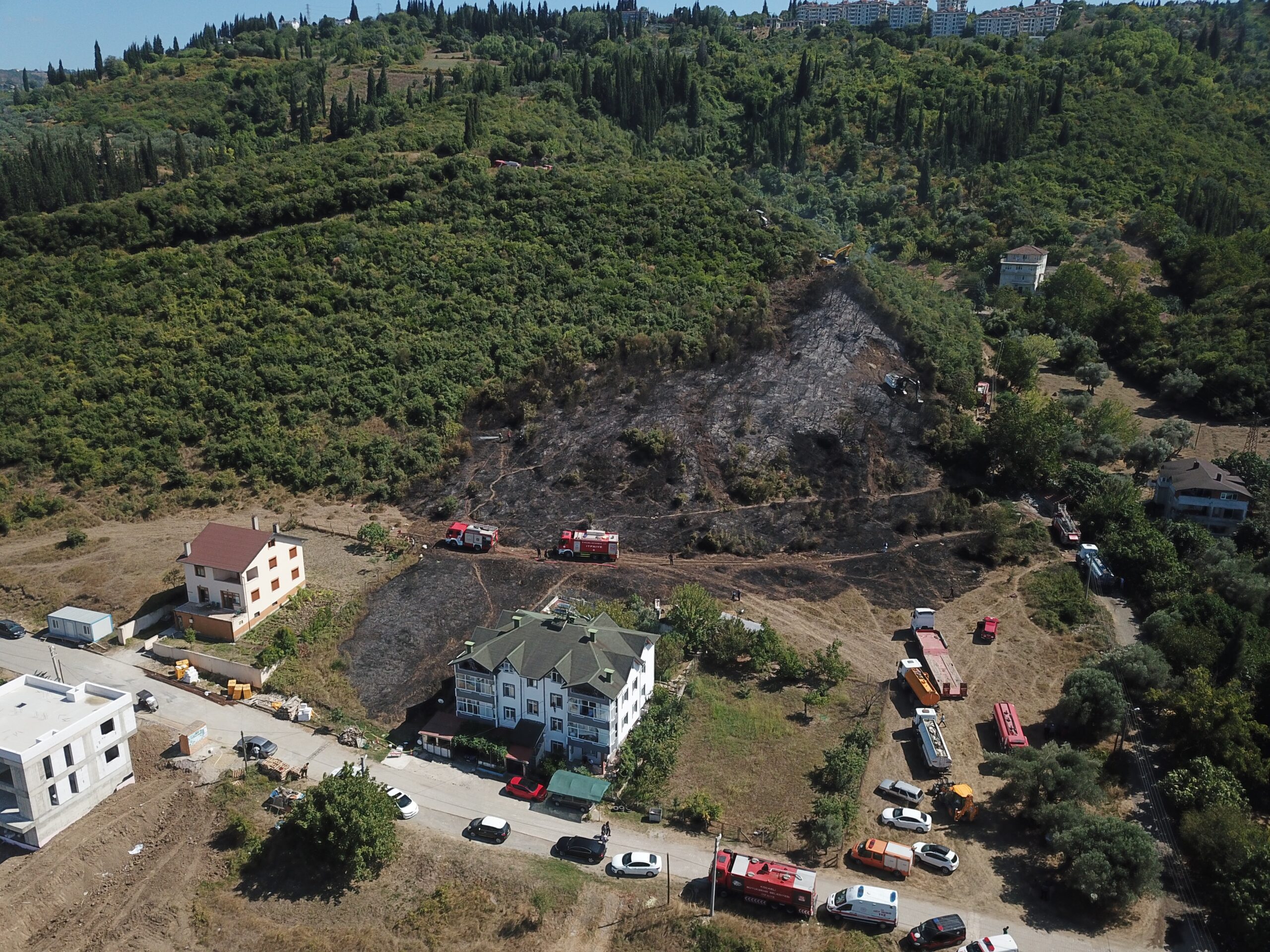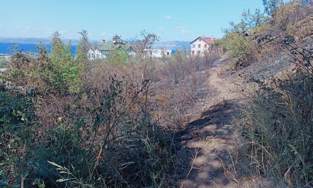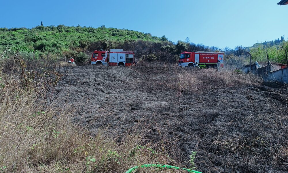 Kocaeli'nin Karamürsel ilçesinde yaklaşık 15 dönümde etkili olan maki yangını, itfaiyenin 1 saatlik çalışması ile söndürüldü. Fotoğraf: Dinçer AKBİR/Karamürsel(Kocaeli), (DHA)