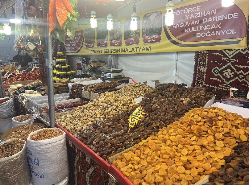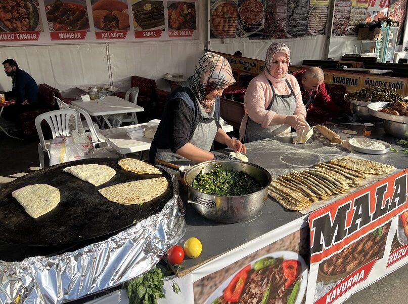 Malatya’nın kurabiyeleri fırınlara atıldı, yemek stantlarının olduğu alanda Malatya lahmacunu odun ateşinde pişirildi. Kayısılar, gül kuruları, kuru dut, badem, pekmezler, pestiller, kömeler ve el açması çeşit çeşit ekmeklerin bulunduğu stantlar da vatandaşlar tarafından büyük ilgi gördü.