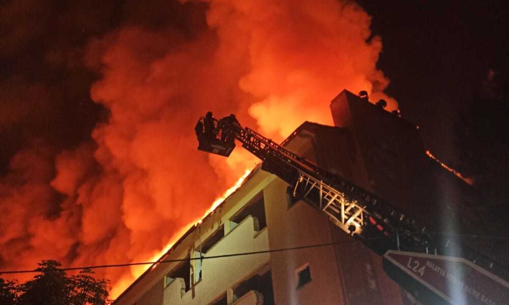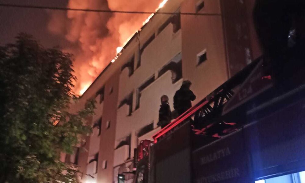 Malatya’da, ağır hasarlı okulun çatısında yangın